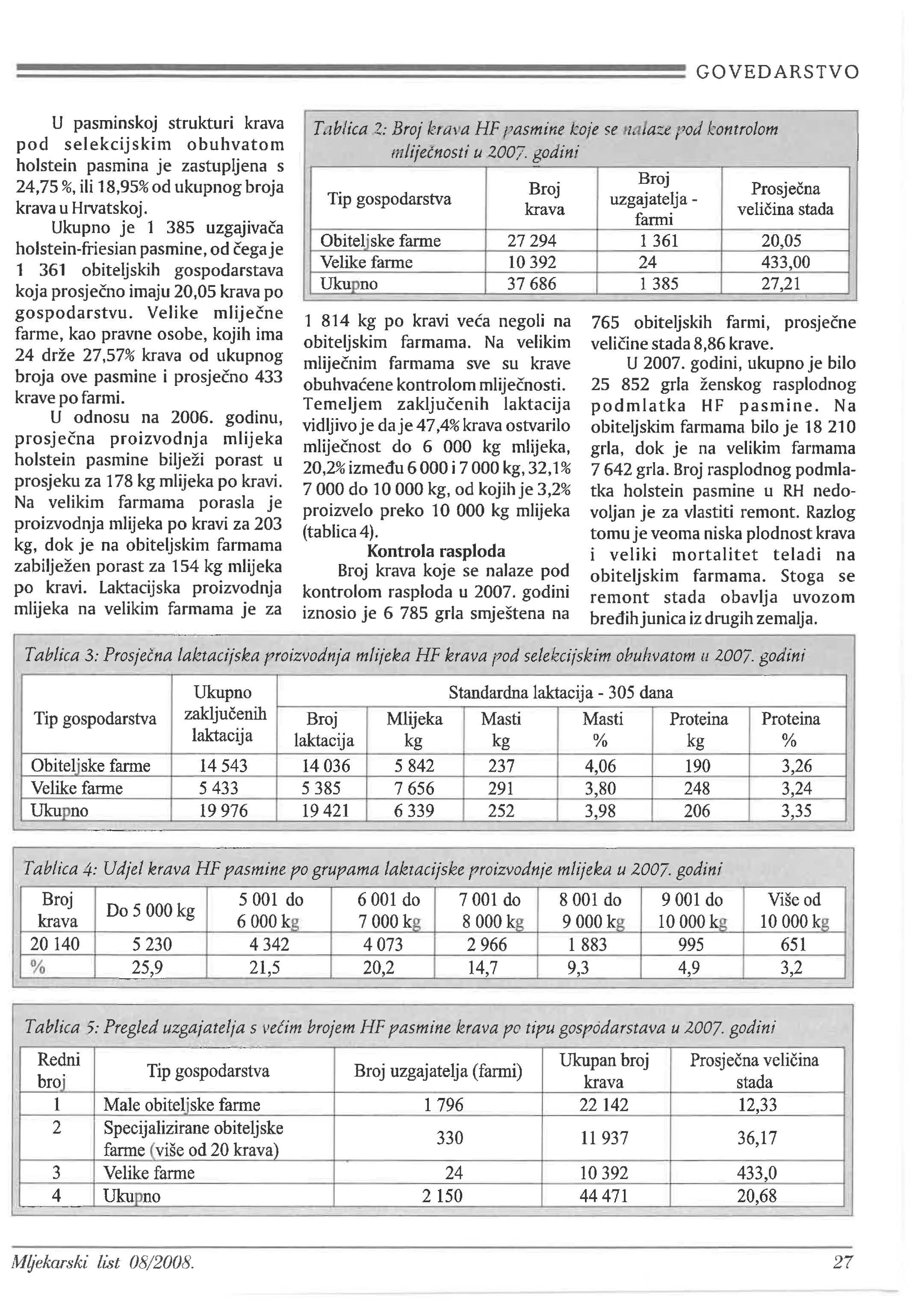 Prvi put se pokazuje ekonomska zakonitost da je za ekonomski efikasniju proizvodnju potrebno kapacitete, odnosno broj krava na farmi. Promjene su još izraženije u 2007. godini,
