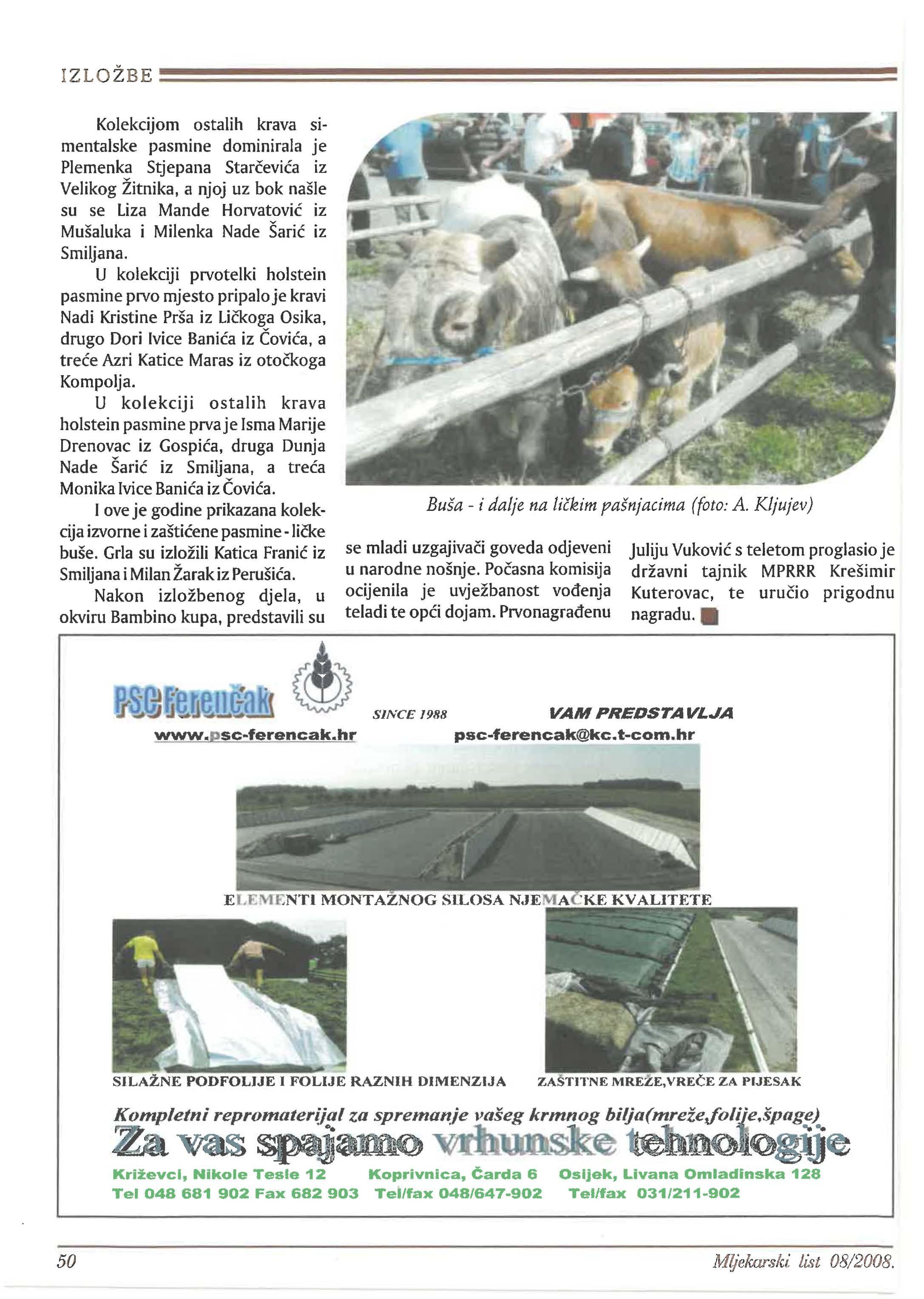 ' ' Svakak~, pažnja i p~a~o: vremem rad, te osJecaJ za životinju i biljku. Bez biljke nema krme, a bez krme i krave nema mlijeka. I na kraju bez ljubavi prema poslu, radu i života nema i zadovoljstva.