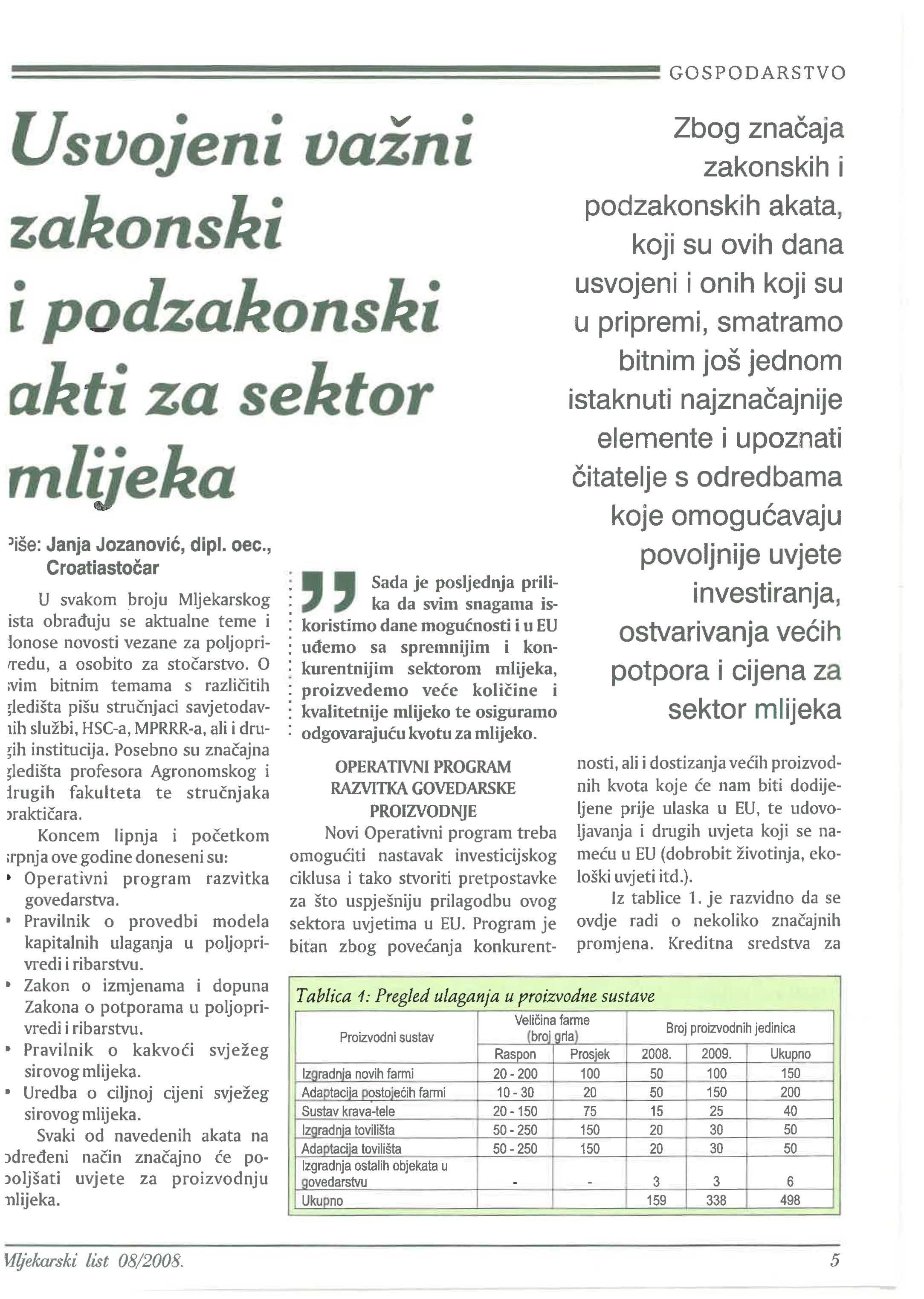 Sada je prilika za sva OPG u Hrvatskoj da srede svoja imanja i svoje farme. se u realizaciju Operativnog programa razvoja govedarstva. Javite se vašim nim poljoprivrednim savjetnicima u HRVATSKOMZAVODU ZA POLJOPRIVREDNU SAVJETODAVNU SLUŽBU,u sve ispostave na svoje županije. Sa svojim savjetnikom za i ratarstvo najprije morate snimiti stanje i radno proizvodne vašeg OPG. trebate napraviti i analizu razvoja unatrag do 2000. ili 1995. godine, tako da se
