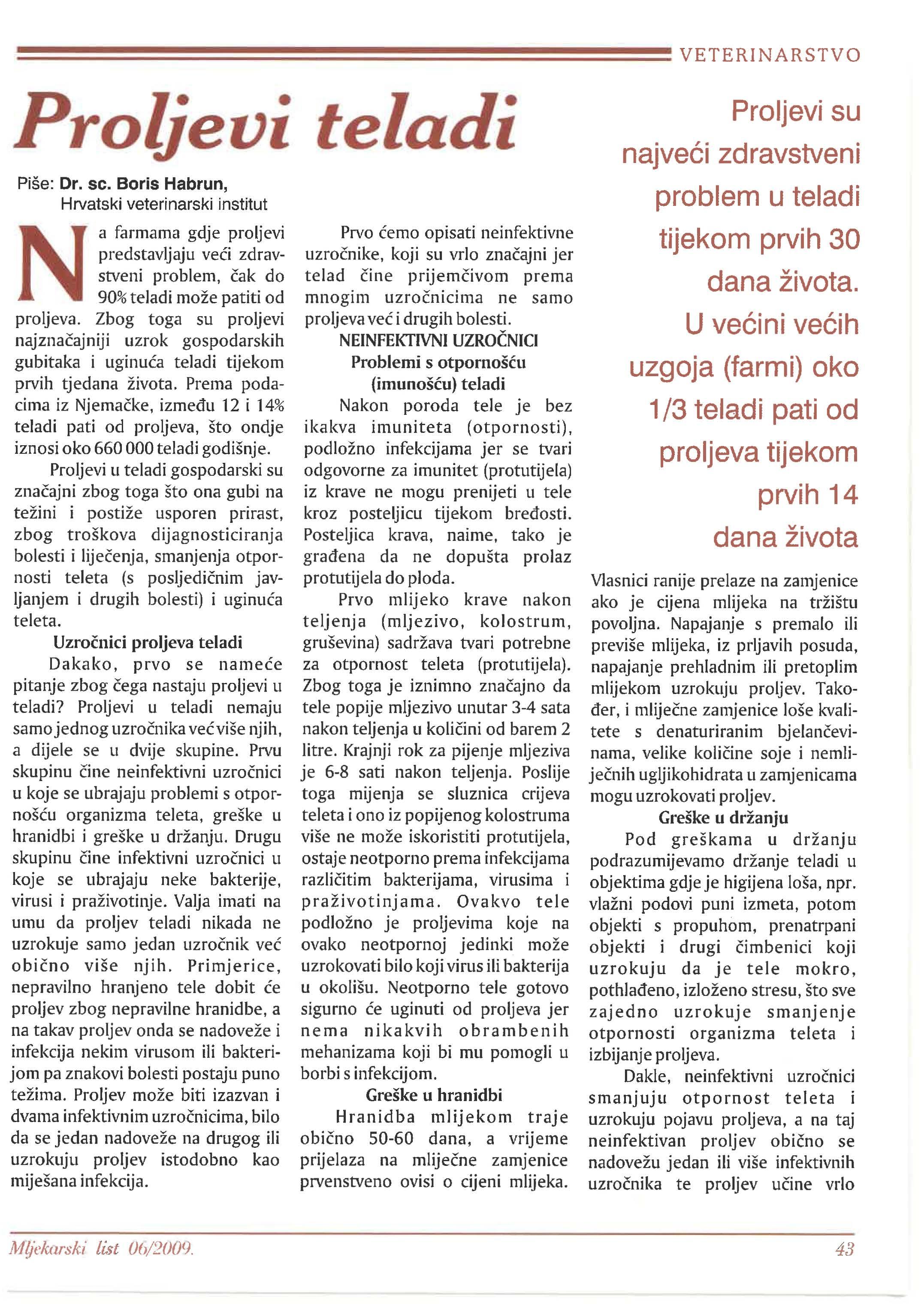 Proljevi teladi ___ _