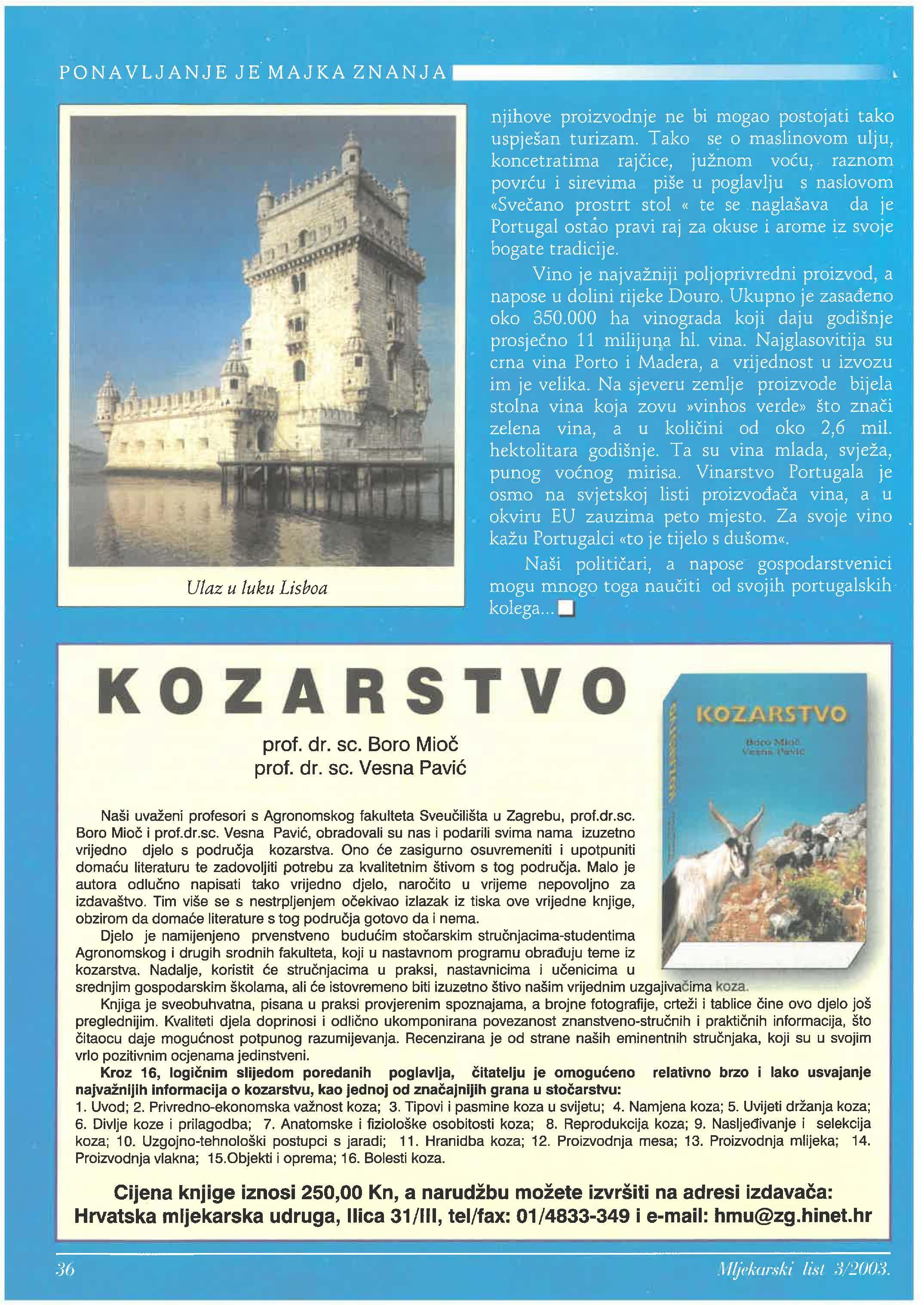Naši uvaženi profesori s Agronomskog fakulteta u Zagrebu, prof.dr.sc. Boro i prof.dr.sc. Vesna obradovali su nas i podarili svima nama izuzetno vrijedno djelo s kozarstva. Ono zasigurno osuvremeniti i upotpuniti literaturu te zadovoljiti potrebu za kvalitetnim štivom s tog Malo je autora napisati tako vrijedno djelo, u vrijeme nepovoljno za izdavaštvo. Tim više se s nestrpljenjem izlazak iz tiska ove vrijedne knjige, obzirom da literature s tog gotovo da i nema.