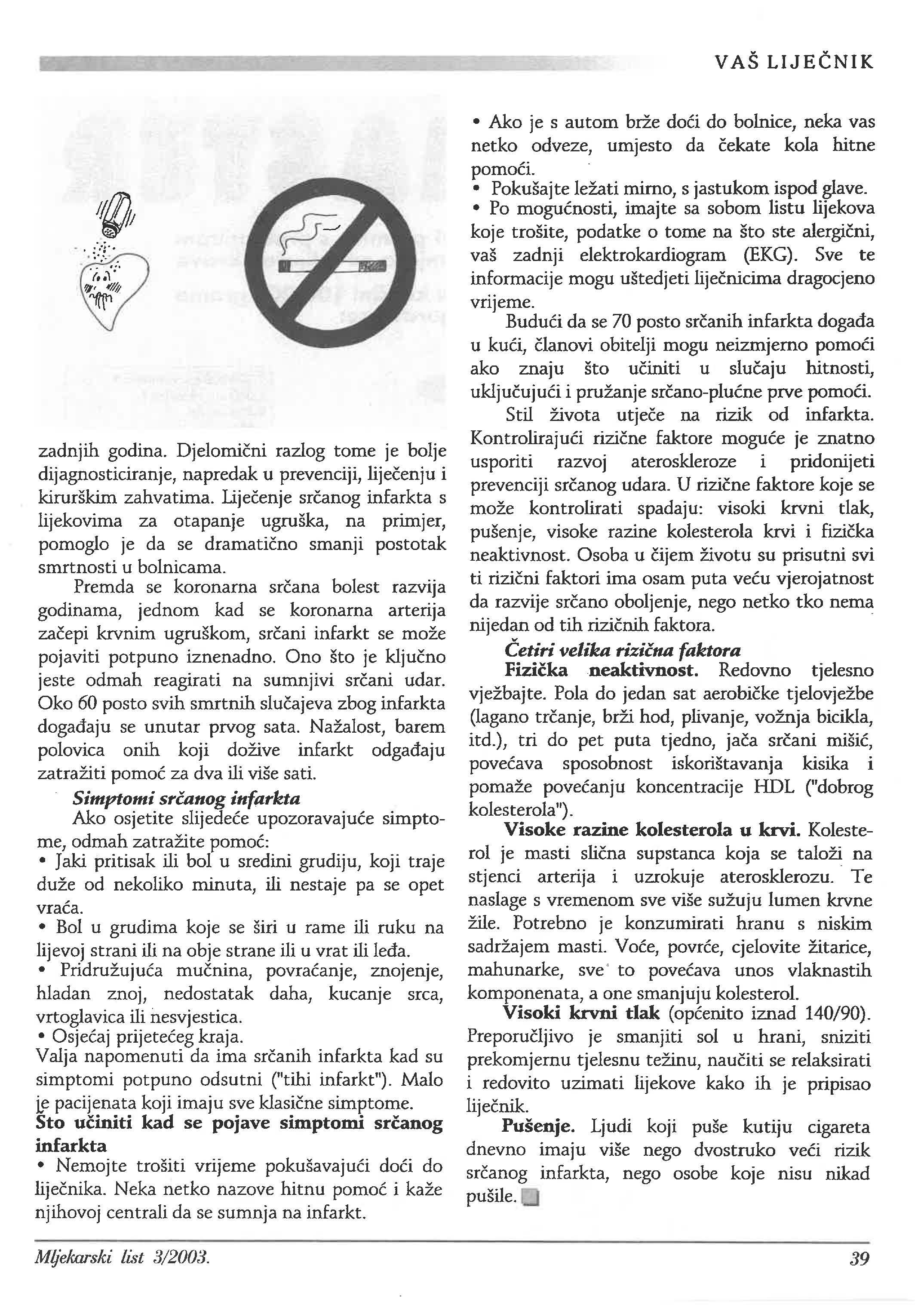 zadnjih godina. razlog tome je bolje dijagnosticiranje, napredak u prevenciji, i kirurškim zahvatima. infarkta s lijekovima za otapanje ugruška, na pnm1er, pomoglo je da se smanji postotak smrtnosti u bolnicama.