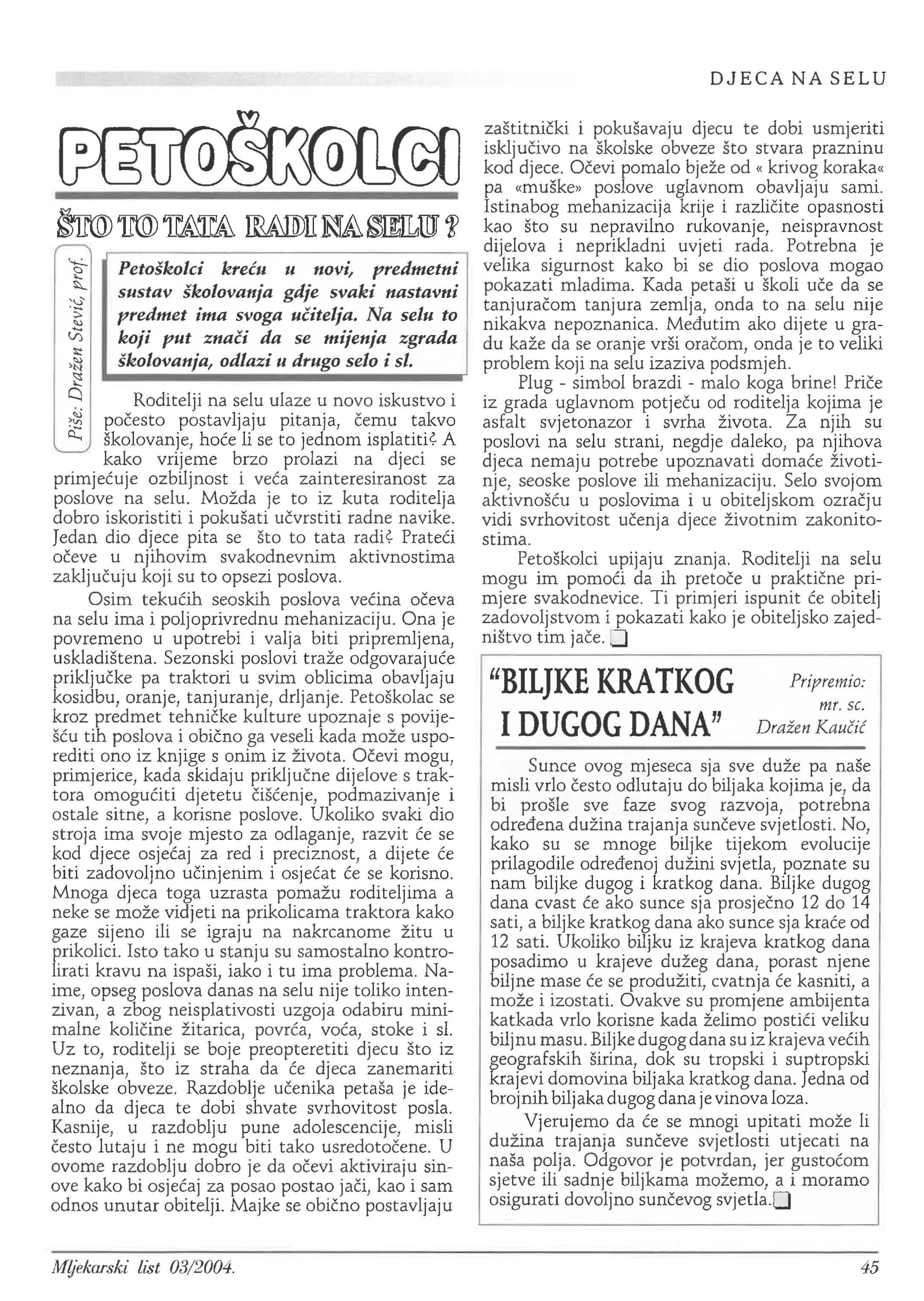 Petoškolci upijaju znanja. Roditelji na selu mogu im da ih u primjere svakodnevice. Ti primjeri ispunit obitelj zadovoljstvom i pokazati kako je obiteljsko zajedništvo tim . ..:J