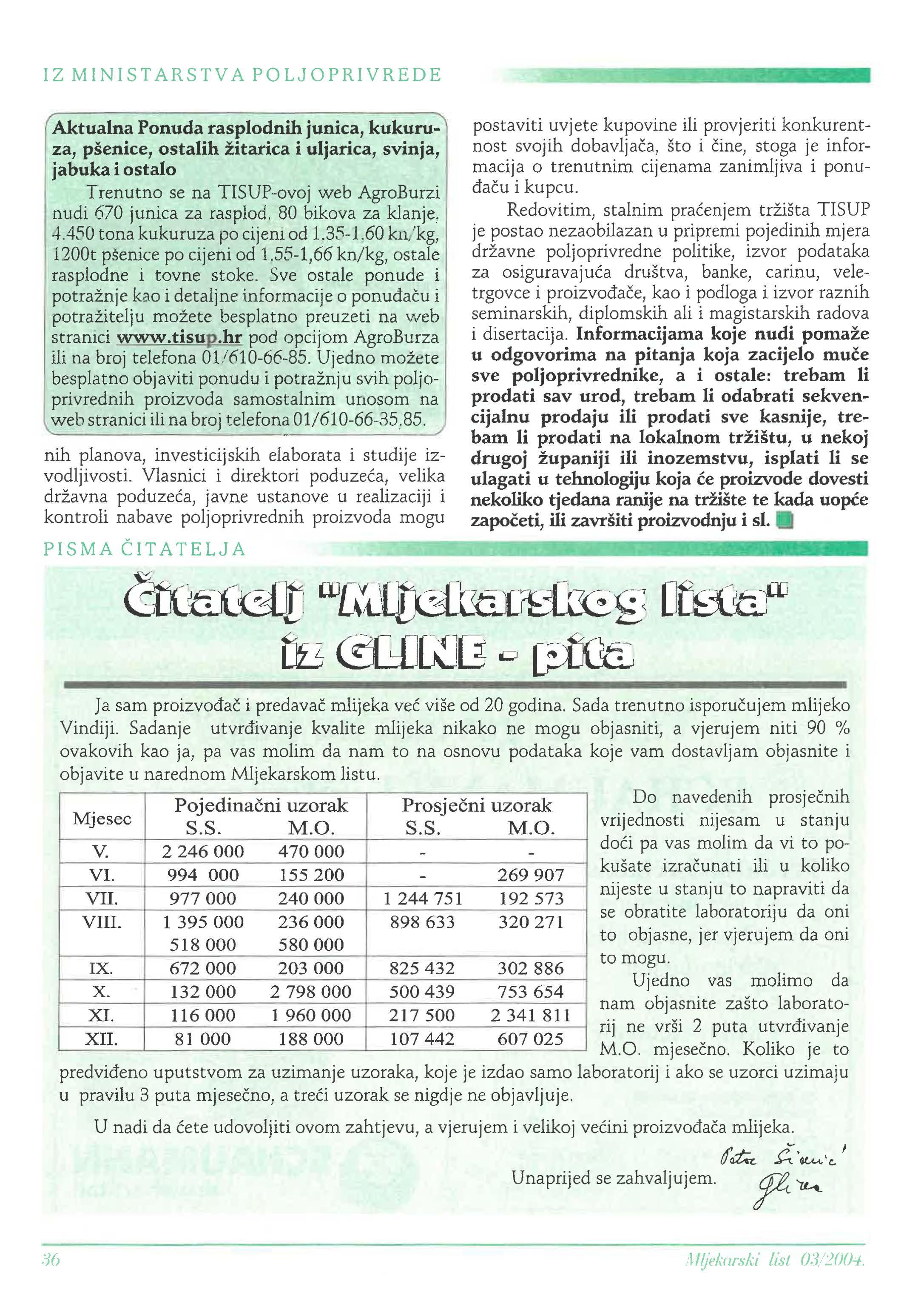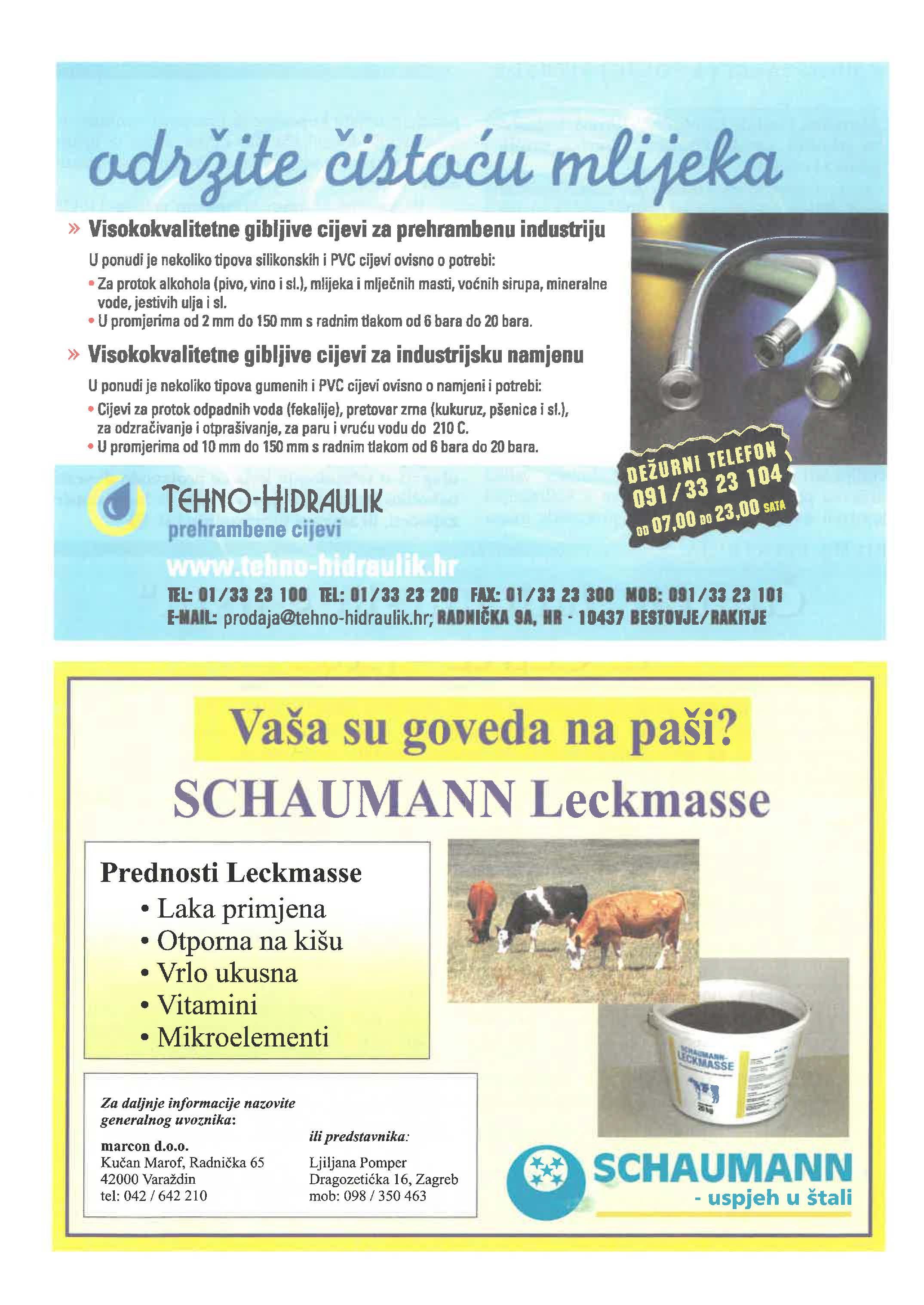 Redakcijski kolegij: dr. Ivo Belan, dipl. ing. Stjepan Brlek, dr. Stjepan Feldhofer, dr. Zoran dipl. ing. Ljiljana Husinec, dipl. ing. Darko Kantoci, mr. se. Antun dipl. ing. Darko Uher, Glavni i odgovorni urednik: dipl. ing. Juraj Redaktorica: dipl. ing. Vera urednica: ing. Mirna Lektorica: Katarina-Zrinka prof., Vlasnik i Hrvatska mljekarska udruga, Zagreb, Uprava i uredništvo: Zagreb, llica 31/111,tel.: 01/4833-349, 4831-265, fax: 01/4833-349, e-mail: hmu@zg.htnet.hr, MB: 3206599, Žiro 2360000-1101408596, Cijena: 5,00 kn, priprema i tisak: "Hlad", Pluska, Nikole Halpera 1, Naklada: 43.000 primjeraka