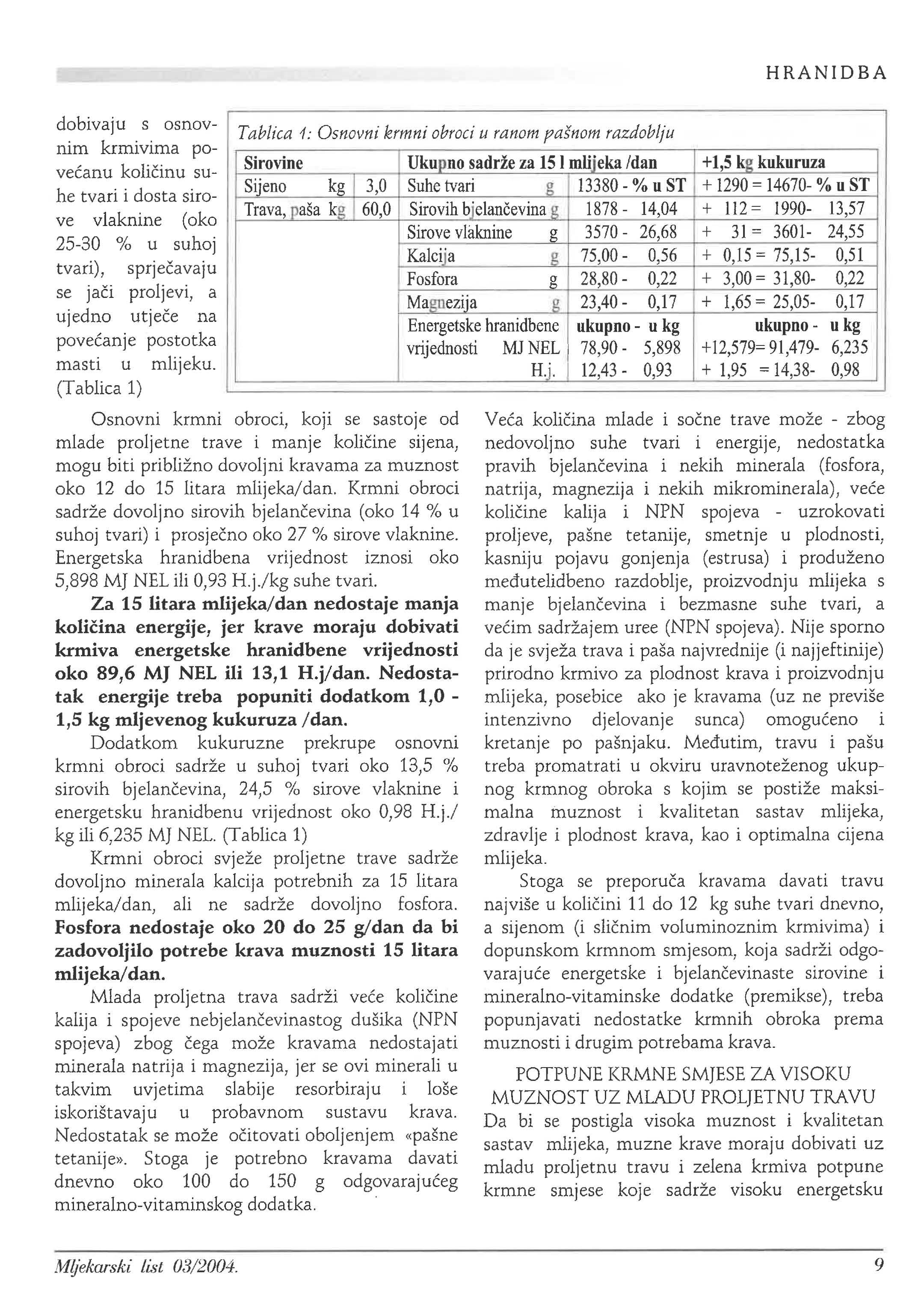 Krave s travom i zelenim krmivima dobivaju u proljetnom razdoblju (krajem ožujka - travanjsvibanj) iz zelenih krmiva (80 do 83 % vlage), a mlada trava sadrži više lako probavljivih i topljivih i spojeva (sirovih i NPN spojeva). S tim se mikrobnih u buragu pa i proizvodnja mlijeka.