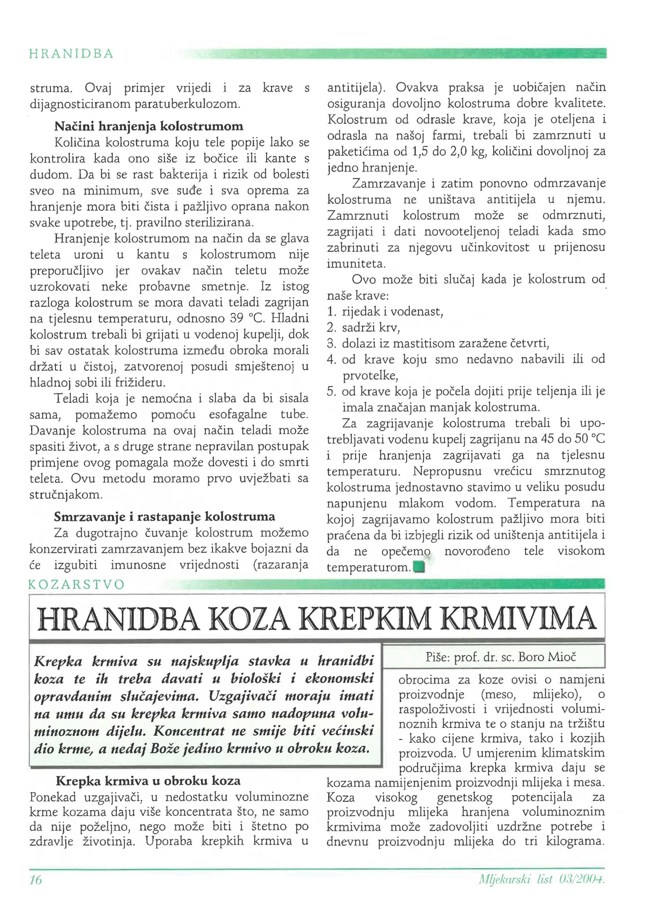 Hranidba i muznost krava u proljetnom razdoblju - 7 Hranidba teladi-kolostrum ___________________ 12