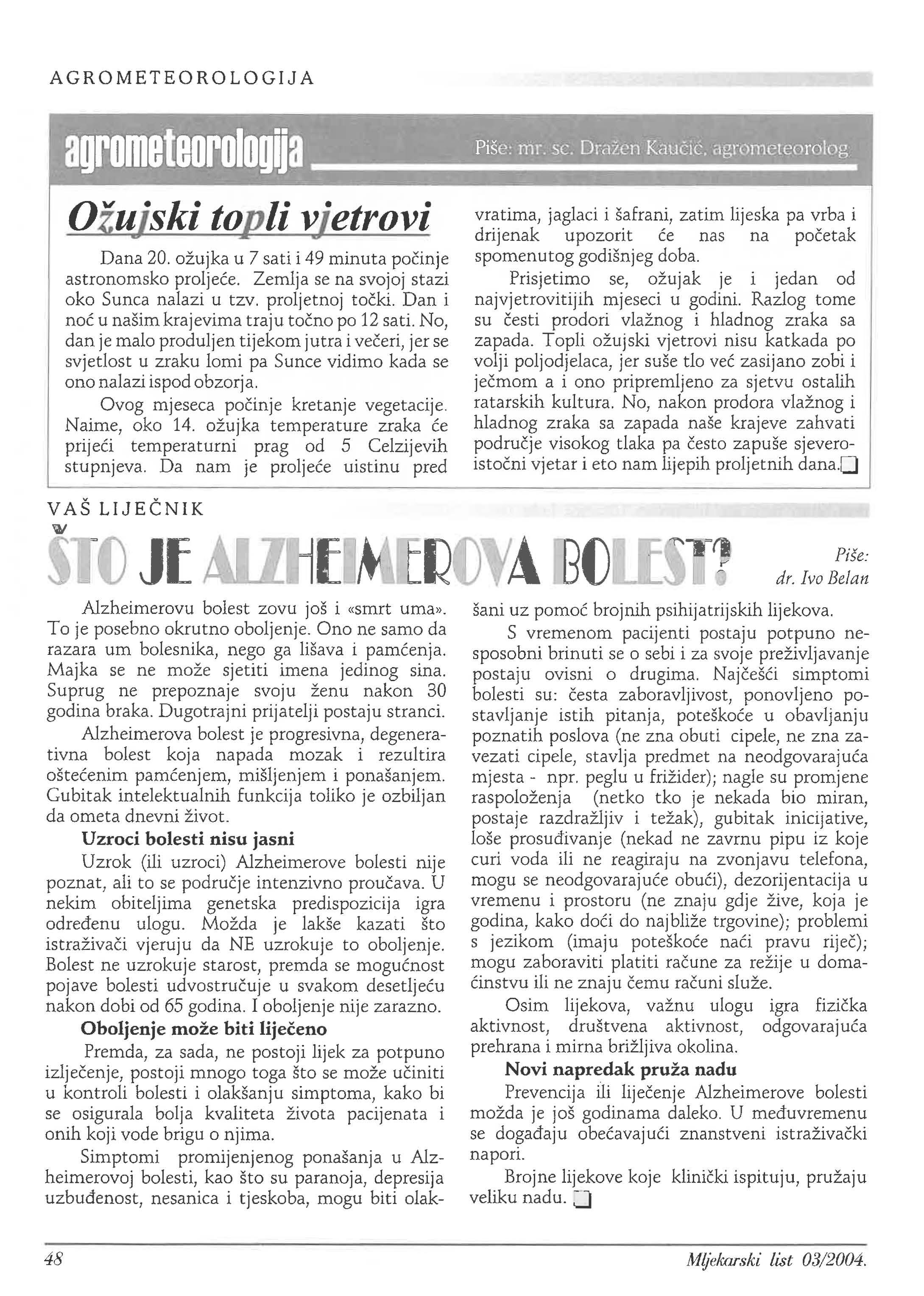 Prisjetimo se, ožujak je i jedan od najvjetrovitijih mjeseci u godini. Razlog tome su prodori vlažnog i hladnog zraka sa zapada. Topli ožujski vjetrovi nisu katkada po volji poljodjelaca, jer suše tlo zasijana zobi i a i ono pripremljeno za sjetvu ostalih ratarskih kultura. No, nakon prodora vlažnog i hladnog zraka sa zapada naše krajeve zahvati visokog tlaka pa zapuše sjeverovjetar i eto nam lijepih proljetnih dana.O Piše: dr. Ivo Belan