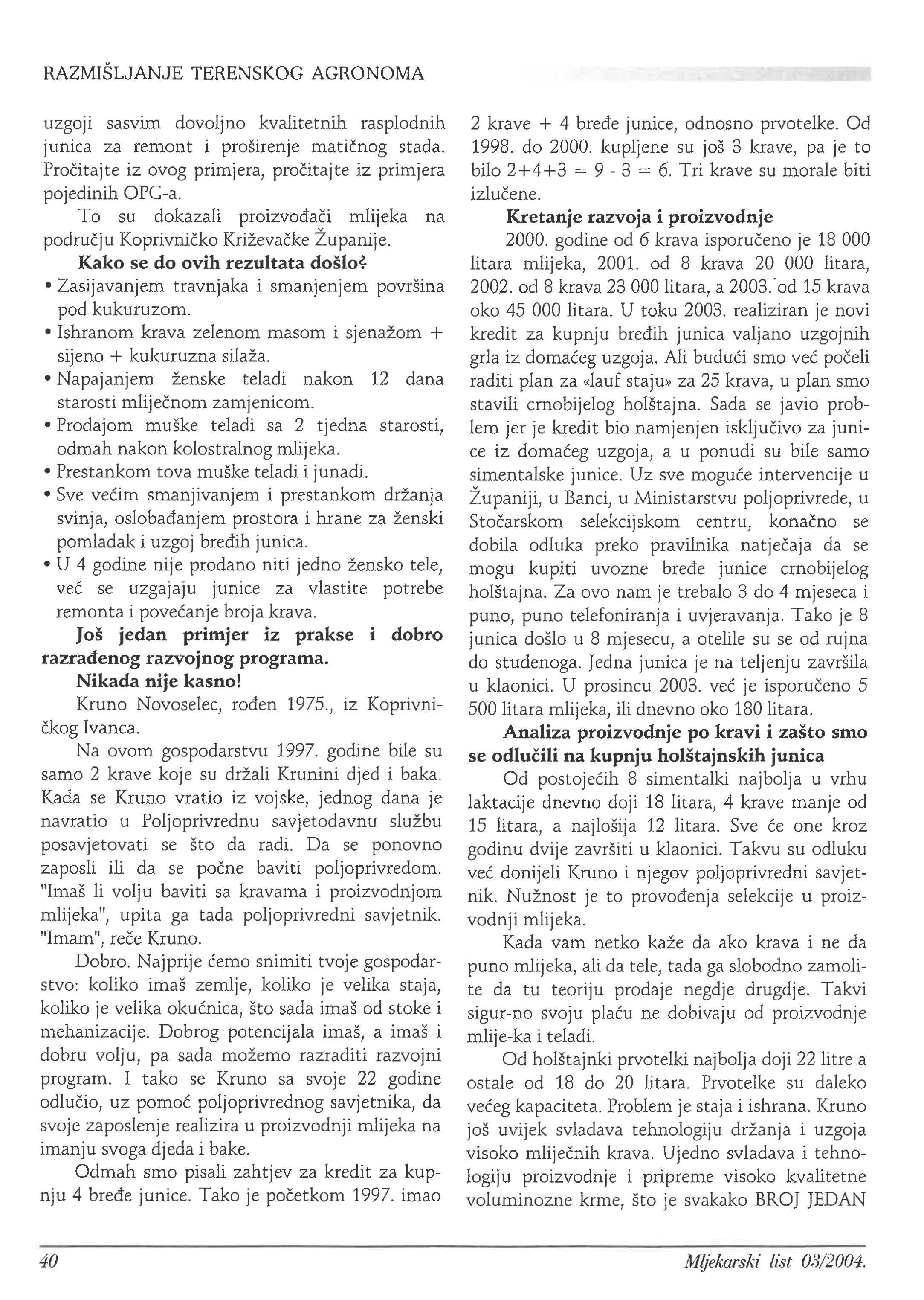 Plan i priprema za «lauf staju» za najmanje 25 krava su napravljeni. Ipak poljoprivredni savjetnik nastojati Krunu uvjeriti da izgradi staju za najmanje 35 do 40 krava bez obzira što za takav broj krava još nema dovoljno zemlje. Taj problem se kroz 5 godina riješiti, obzirom na broj u Ivancu i okolnim selima. Zemlju kupuju i kupovat oni koji imaju novce, a od mlijeka uvijek dolaziti sigurni novci.