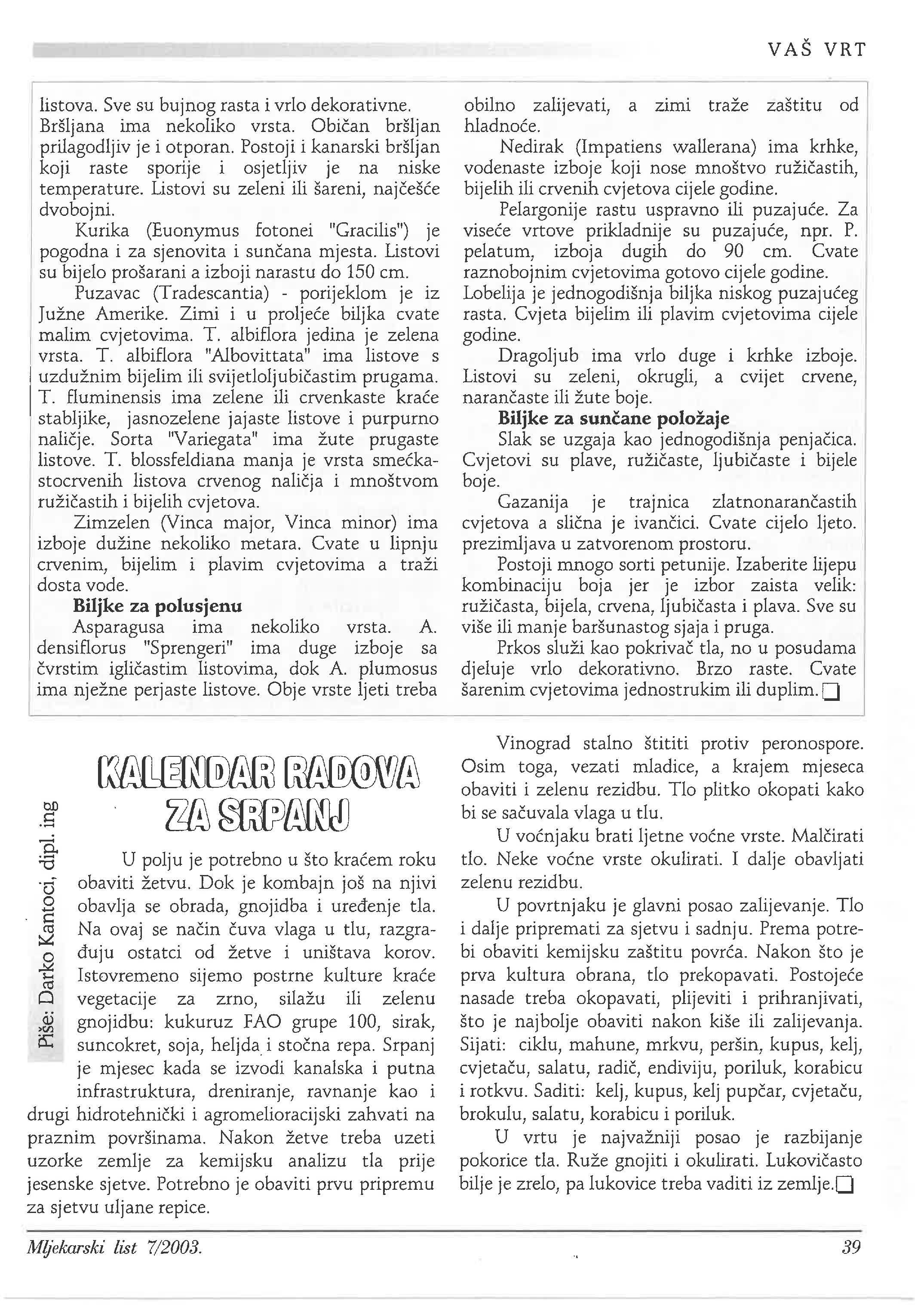 U vrtu je najvažniji posao je razbijanje pokorice tla. Ruže gnojiti i okulirati.
