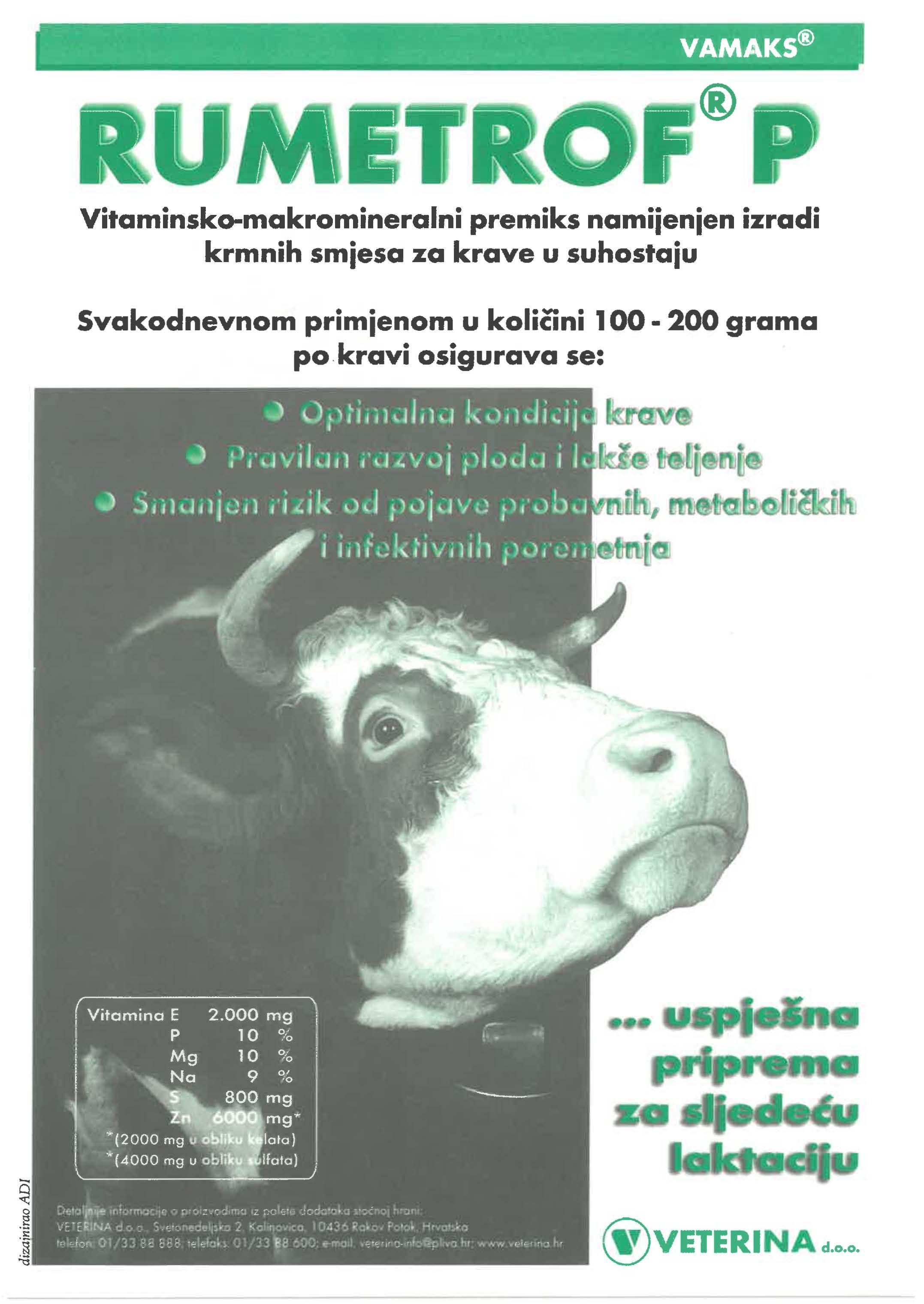 Vitaminsko-makromineralni premiks namiienien izradi krmnih smiesa za krave u suhostaiu