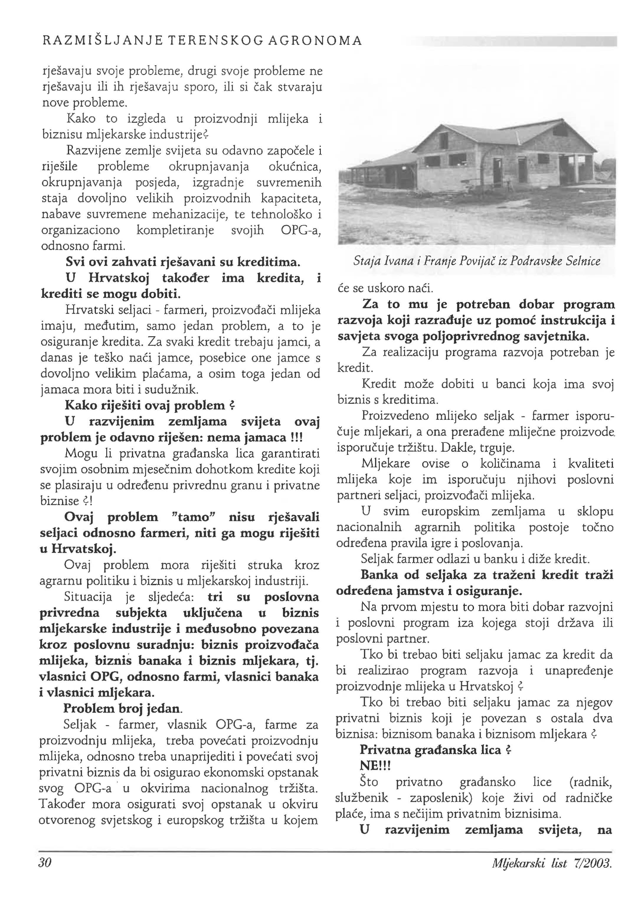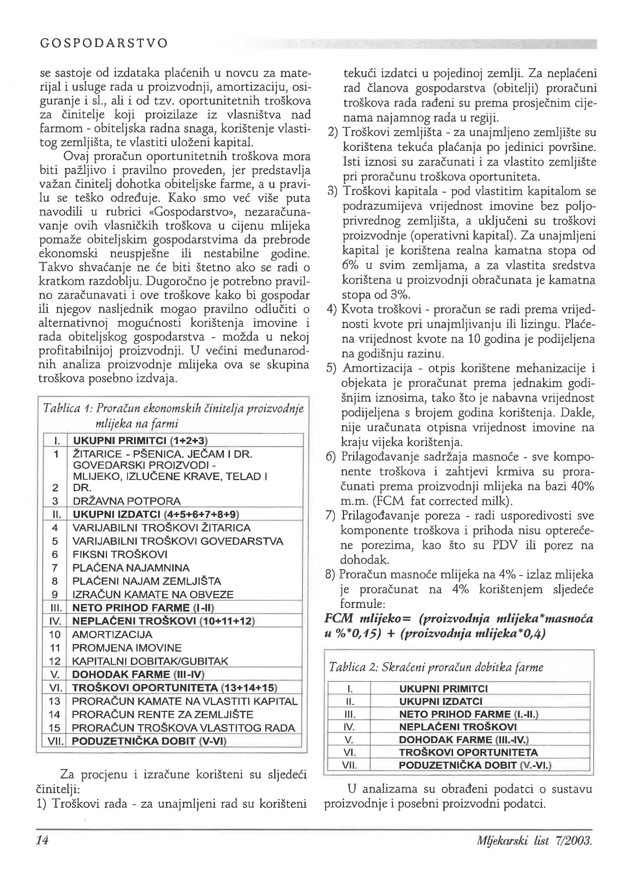 Proizvodni i ekonomski rezultati u proizvodnji mlijeka - pregled II. _ _ _ _ 13