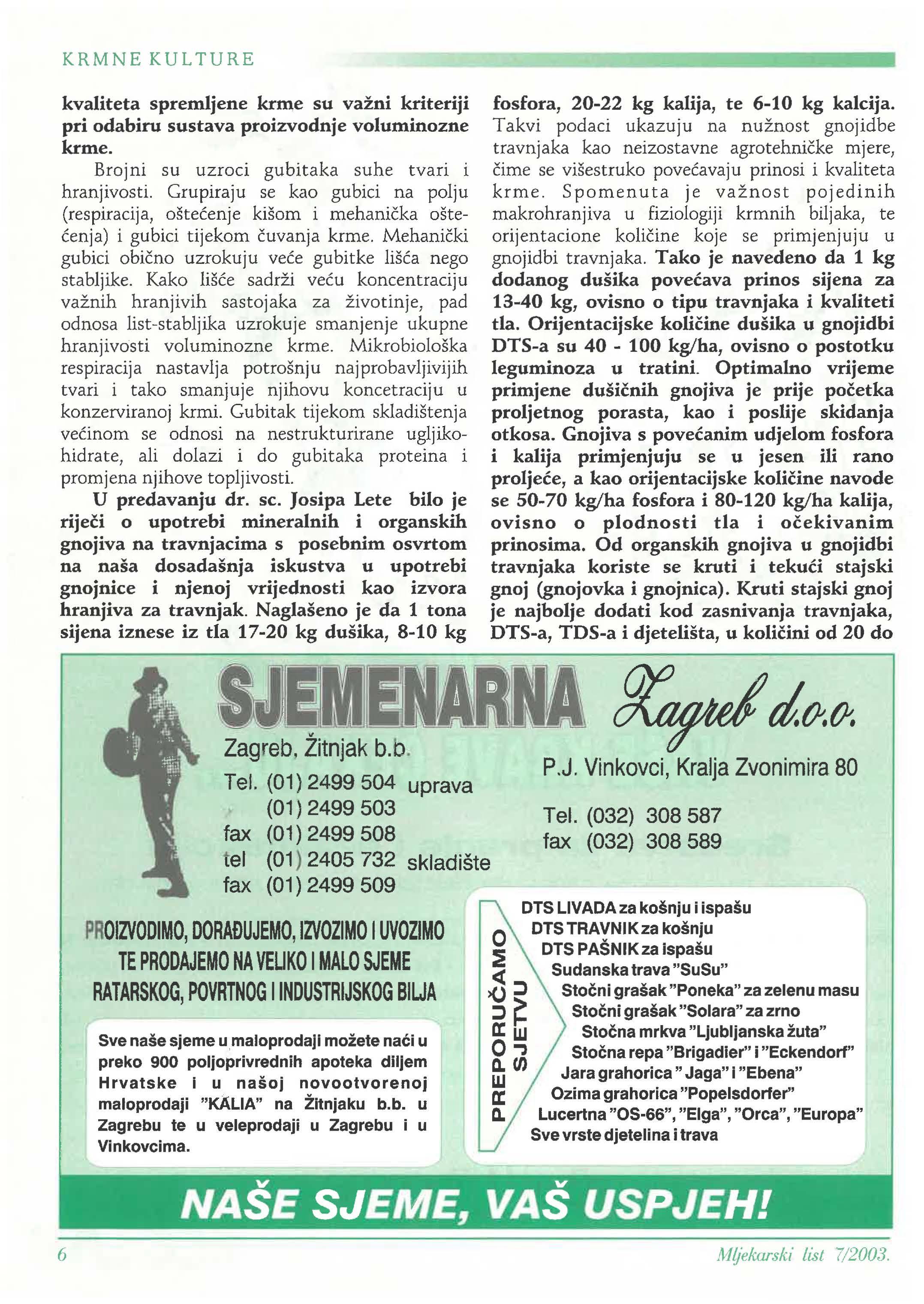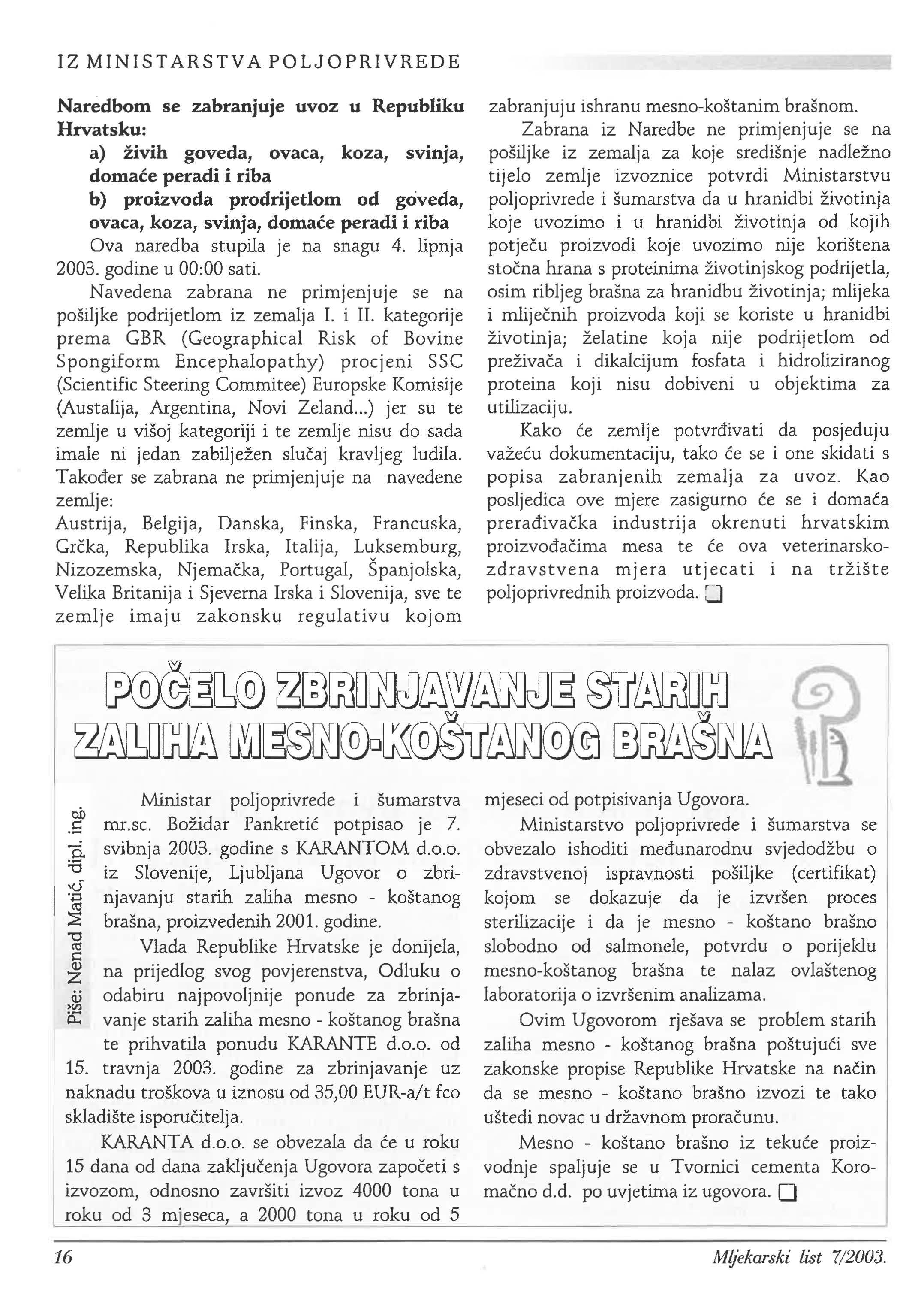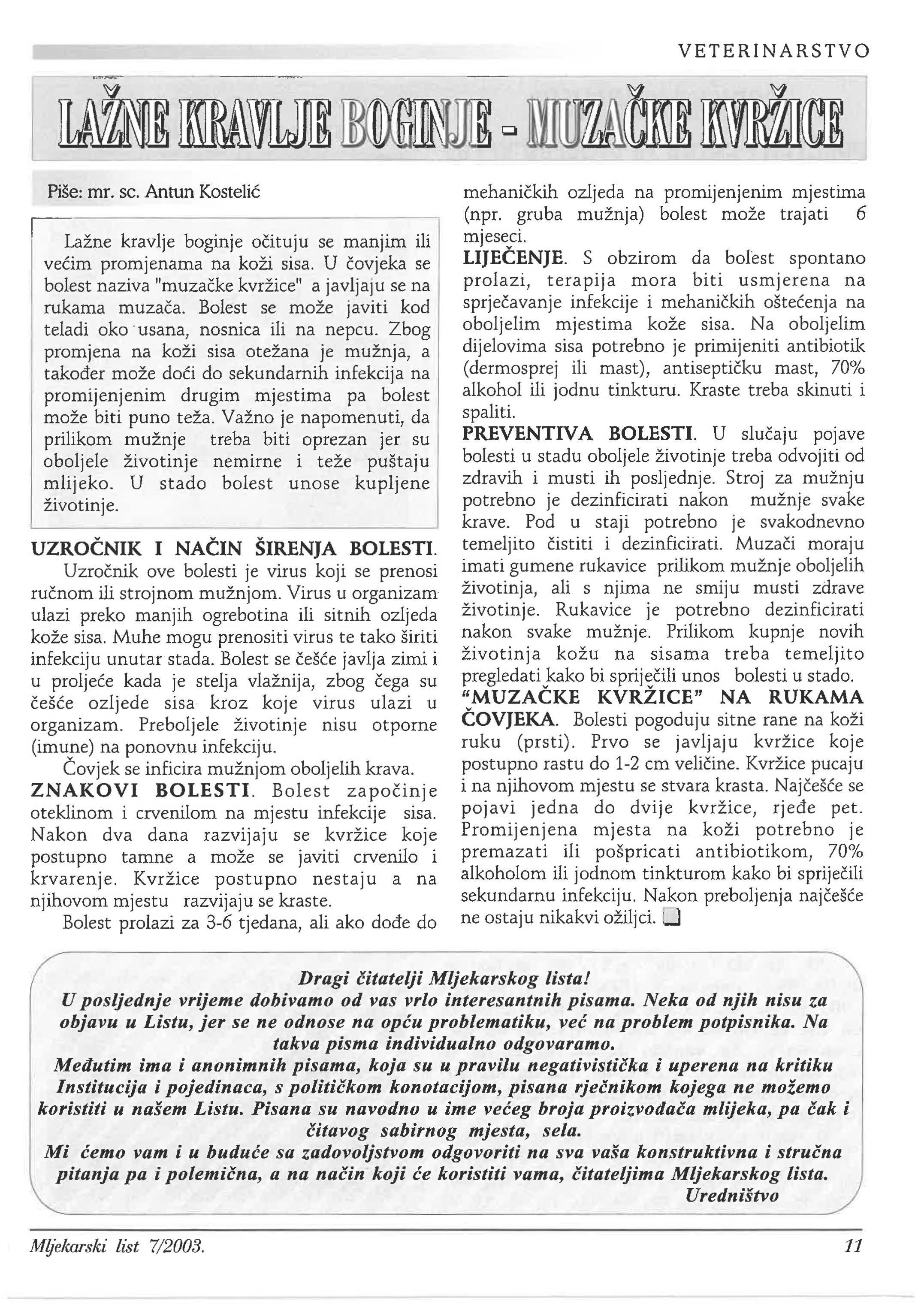 Redakcijski koleglj: dr. Ivo Belan, dipl. ing. Stjepan Brlek, dr. Stjepan Feldhofer, dr. Zoran dipl. ing. Ljiljana Husinec, dipl. ing. Darko Kantoci, mr. se. Antun dipl. ing. Darko Uher, Glavni I odgovorni urednik: dipl. ing. Juraj Redaktorlca: dipl. ing. Vera urednica: lng. Mirna Lektorica: Katarina-Zrinka prof., Crteži: dipl. ing. Nikola Vlasnik i Hrvatska mljekarska udruga, Zagreb, Uprava I uredništvo: Zagreti, llica 31/111,tel.: 01/4833-349, 4831-265, fax: 01/4833-349, &-mail: hmu@zg.htnet.hr, MB: 3206599, Žiro 2360000-1101408596, Cijena: 4,50 kn, pripreme i tisak: "Hlad", Pluska, Nikole Halpera 1, Naklada: 43.000 primjeraka