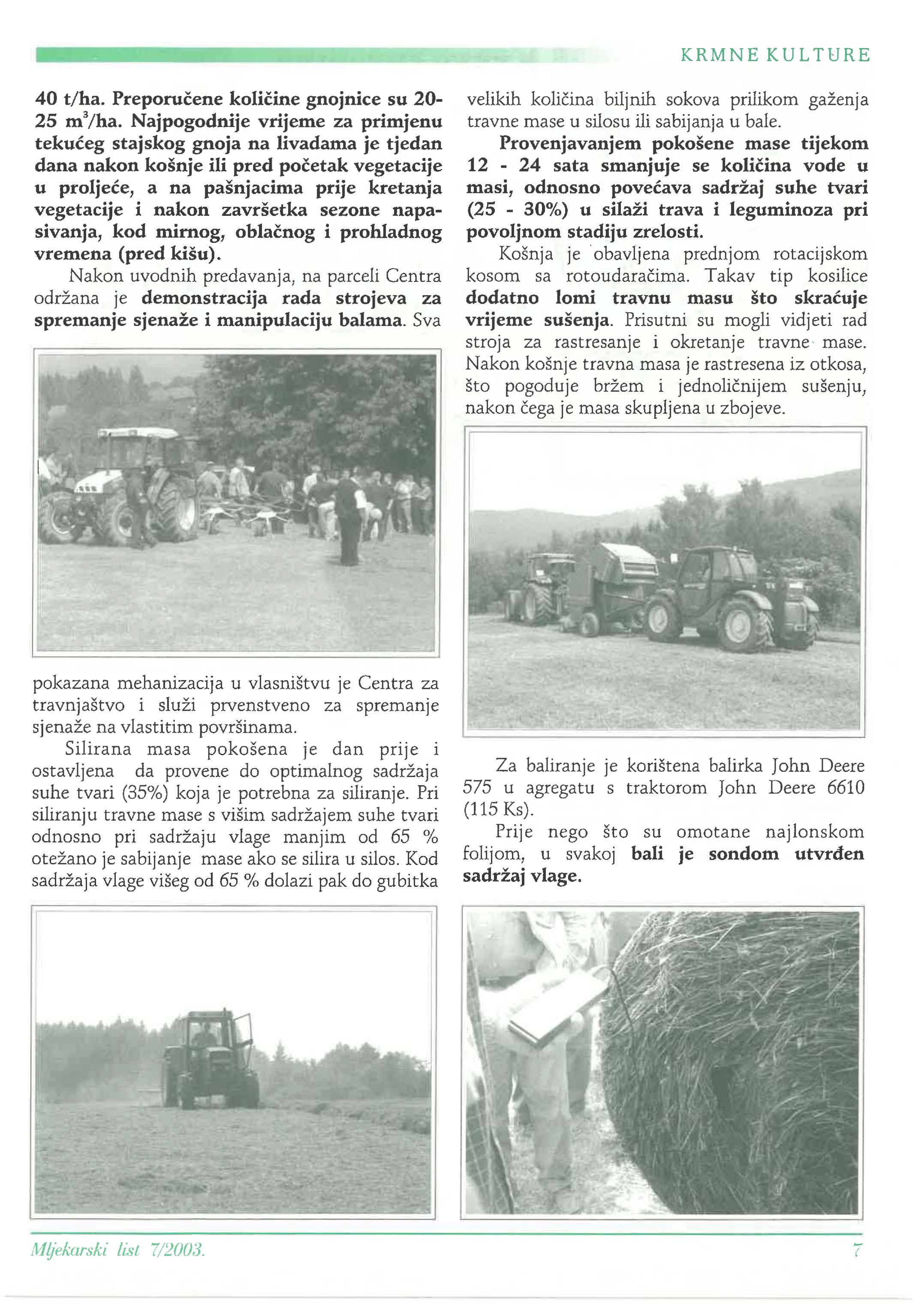 U organizaciji Hrvatske mljekarske udruge i Centra za travnjaštvo Medvednica, Agronomskog fakulteta u Zagrebu održano je predavanje na temu: PROIZVODNJA I KONZERVIRANJE KRME NA TRA VNJACIMA, te demonstracija rada strojeva za spremanje sjenaže.