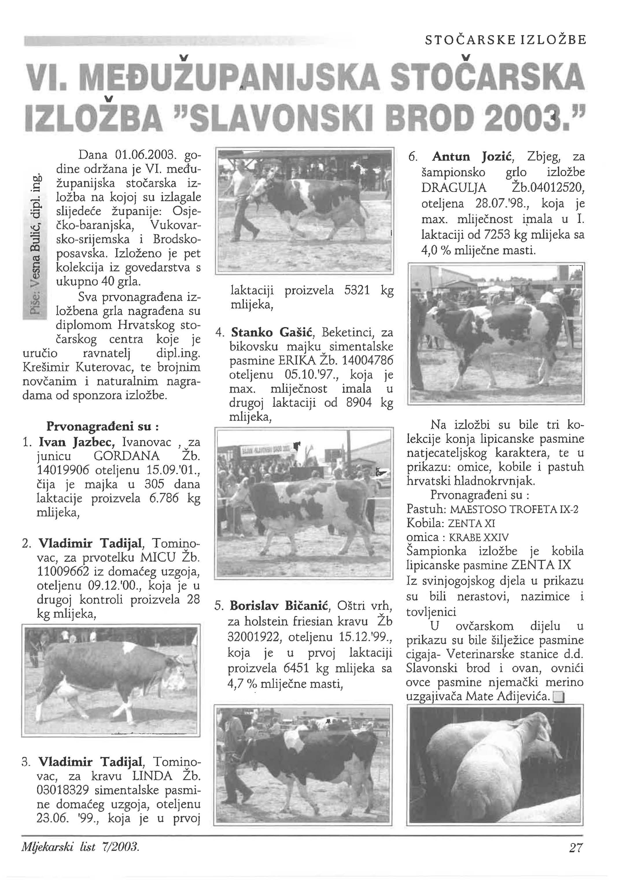 III. izložba stoke i V. izložba konja Krapinsko-zagorske župaije "Zlatar 2003.''. _______ 26 VI. izložba "Slavonski Brod 2003.''