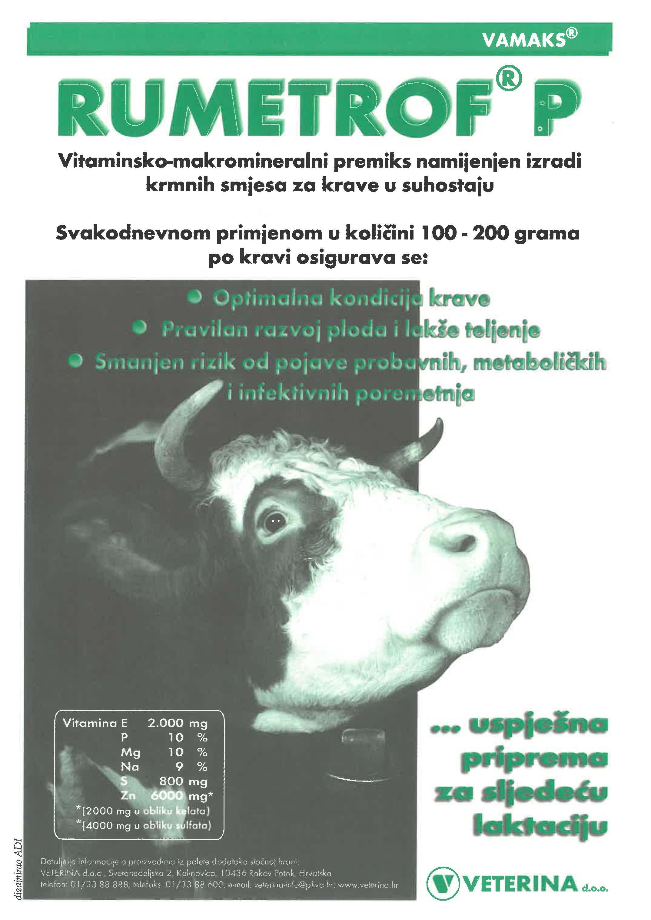 Vitaminsko-makromineralni premiks namiienien izradi krmnih smiesa za krave u suhostaiu