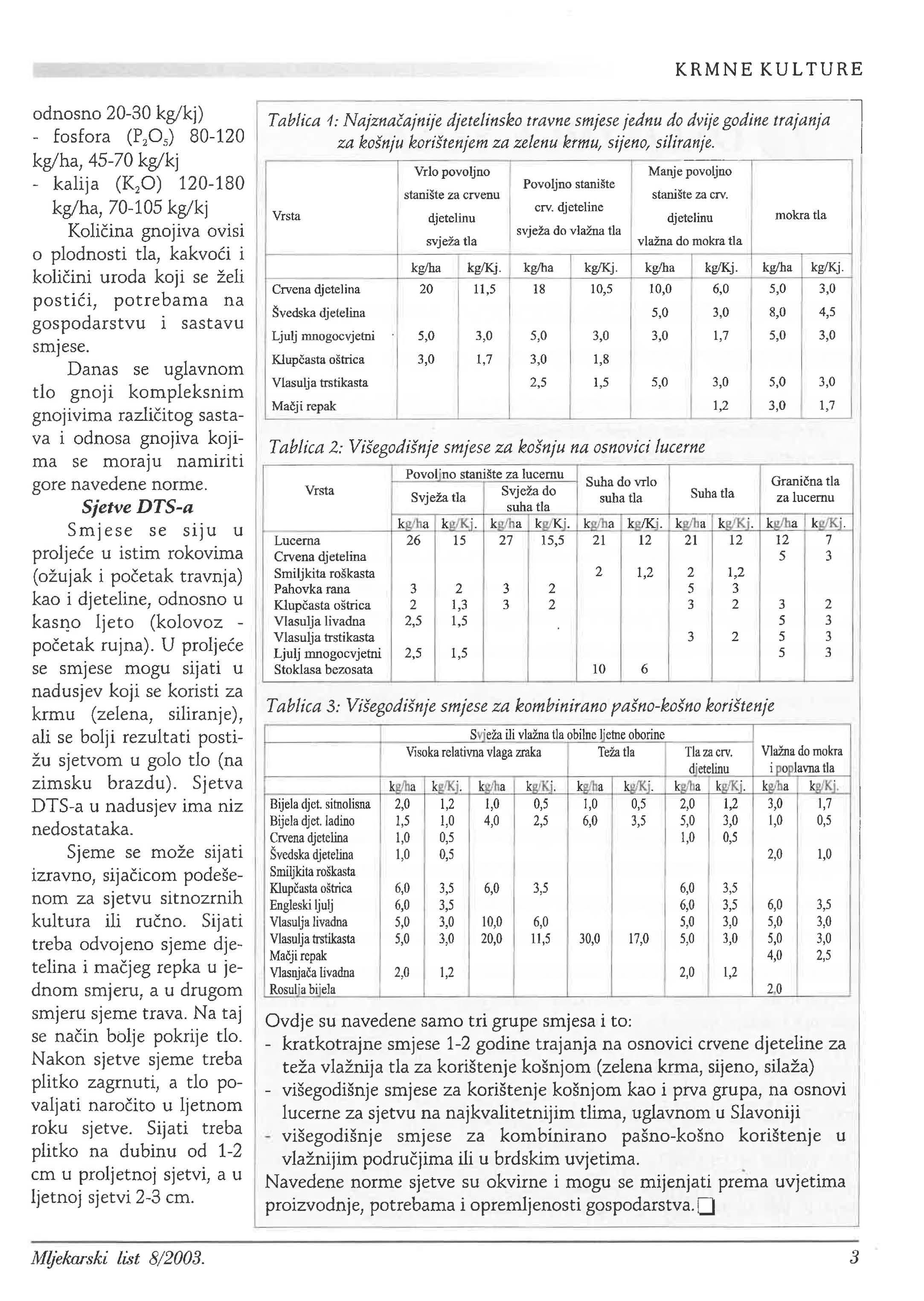 Tablica1: djetelinskotravnesmjesejednu do dvijegodinetrajanja za košnjukorištenjemza zelenu krmu, sijeno,si/iranje.
