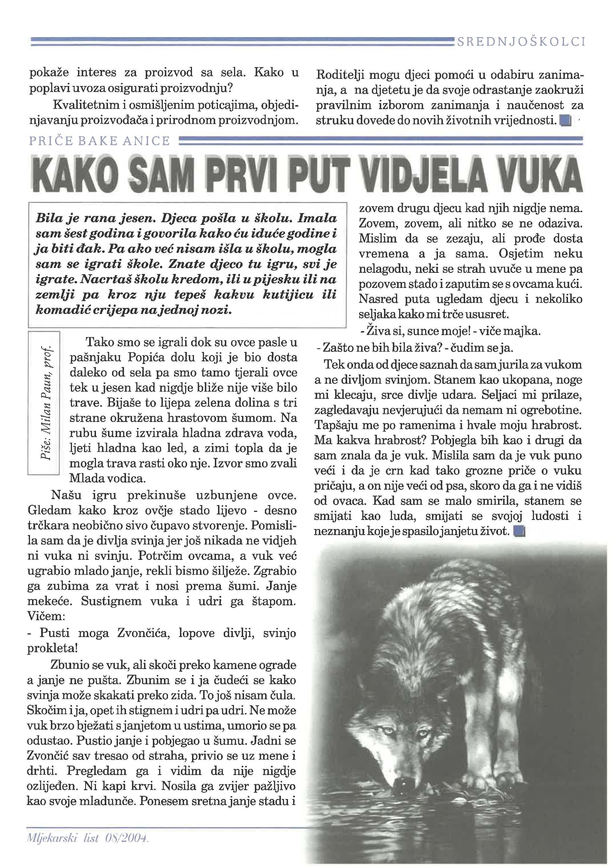 Tek onda od djece saznah da sam jurila za vukom a ne divljom svinjom. Stanem kao ukopana, noge mi klecaju, srce divlje udara. Seljaci mi prilaze, zagledavaju da nemam ni ogrebotine. Tapšaju me po ramenima i hvale moju hrabrost. Ma kakva hrabrost? Pobjegla bih kao i drugi da sam znala da je vuk. Mislila sam da je vuk puno i da je crn kad tako grozne o vuku a on nije od psa, skoro da ga i ne vidiš od ovaca. Kad sam se malo smirila, stanem se smijati kao luda, smijati se svojoj ludosti i neznanju koje je spasila janjetu život.