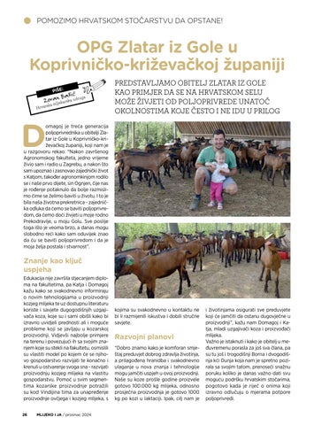 Koliko Vam je do sada obrazova- • nje pomoglo u proizvodnji? Iako sam tre ć a godina animalnih znanosti na Agronomskom fakultetu, smatram da sam do sada dobila većinu znanja potrebnog za suvremenu proizvodnju mlijeka. Ipak, najvažnije je što sam to znanje uspijevala od prvog