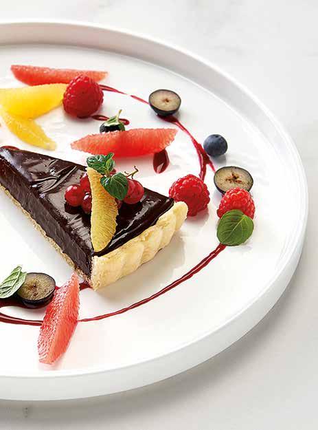 TART OD ČOKOLADNOG GANACHEA SA SVJEŽIM BOBICAMA, COULIS OD ŠUMSKOG VOĆA