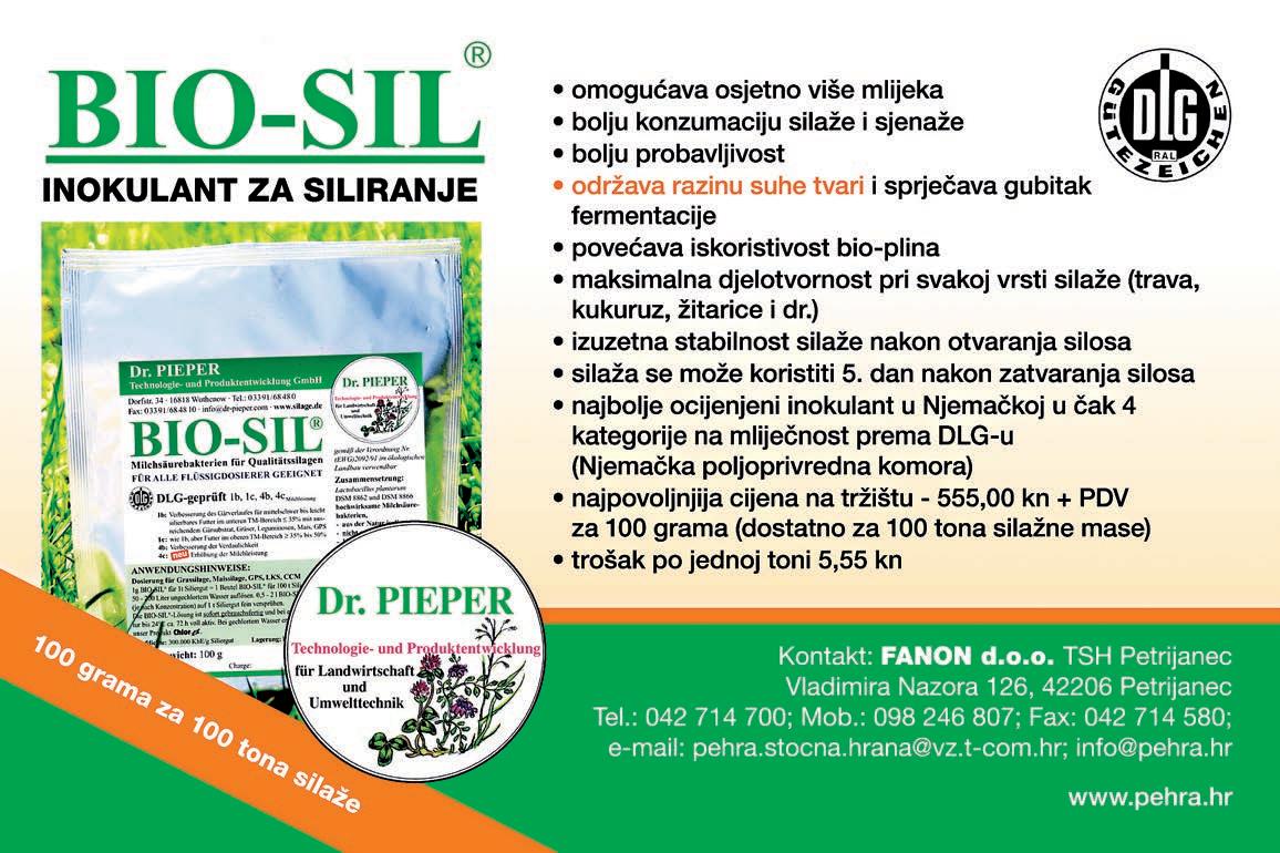 štanu zriobu s oko 35% suhe tvari. Siliranu masu treba isjeckati na 2-3 cm, silos dobro nabiti i gaženjem traktorom istisnuti zrak, brzo ga napuniti i prekriti folijom. Kapacitet silosa ovisi o potrebama odnosno o veličini stada. Proces fermentacije traje tri do četiri tjedna, nakon čega se može početi koristiti nova silaža. Silažu uzimati jednakomjerno po cijeloj širini silosa, a prije upotrebe voluminozne hrane poželjno je ispitati hranidbene vrijednosti kako bi se mogao napraviti izbalansirani obrok.