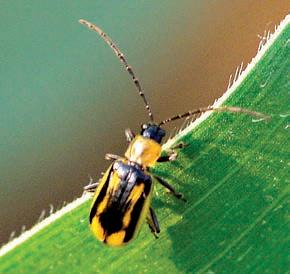 ćine Gola, gdje su uočene i prve gospodarske štete. Od 2003. godine bilježimo značajno povećanje brojnosti kukuruzne zlatice na našem području. Od tada se intenziv-