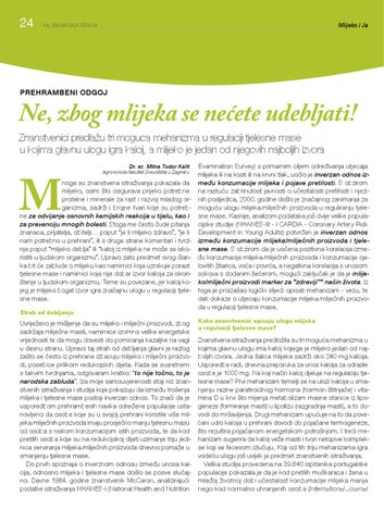 Uvriježeno je mišljenje da su mlijeko i mliječni proizvodi, zbog sadržaja mliječne masti, namirnice iznimno velike energetske vrijednosti te da mogu dovesti do pomicanja kazaljke na vagi u desnu stranu. Upravo taj strah od debljanja glavni je razlog zašto se često iz prehrane izbacuju mlijeko i mliječni proizvodi, posebice prilikom redukcijskih dijeta. Kada se susretnem s takvim tvrdnjama, odgovaram kratko: “to nije točno, to je narodska zabluda”. Iza moje samouvjerenosti stoji niz znanstvenih istraživanja i studija koje pokazuju da između trošenja mlijeka i tjelesne mase postoji inverzan odnos. To znači da je usporedbom prehrambenih navika određene populacije ustanovljeno da osobe koje su u svojoj prehrani koristile više mlijeka/mliječnih proizvoda imaju prosječno manju tjelesnu masu od osoba s niskom konzumacijom istih proizvoda, te da kod pretilih osoba koje su na redukcijskoj dijeti uzimanje triju jedinica serviranja mlijeka/mliječnih proizvoda dnevno pomaže u smanjenju tjelesne mase. Do prvih spoznaja o inverznom odnosu između unosa kalcija, odnosno mlijeka i tjelesne mase došlo se posve slučajno. Davne 1984. godine znanstvenik McCaron, analizirajući podatke istraživanja NHANES-I (National Health and Nutrition