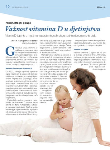 Važnost vitamina D u djetinjstvu Vitamin D topiv je u mastima, a popis njegovih uloga svakim danom sve je dulji... Doc. dr. sc. Darija Vranešić Bender Vitaminoteka, Zagreb
