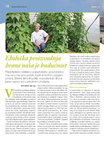 Ekološka proizvodnja hrane naša je budućnost Predstavljamo obiteljsko poljoprivredno gospodarstvo koje se u nas prvo počelo baviti ekološkim uzgojem povrća, žitarica, ljekovitog bilja, a posebna je njihova ljubav uzgoj koza u prirodnom okruženju
