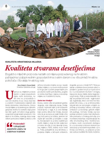 ječne proizvode s kojima se ova respek- dogodila upravo u Vindiji 1977. Time putabilna mljekara s pravom može ponosi- njenje u staklene boce pomalo odlazi u ti. Mi ga pak s punim povjerenjem pre- povijest a građani se po prvi put susrepotrazi za mlijekom proizve- poručamo našim potrošačima, pogoto- ću i s proizvodnom markom ‘z bregov, denim u sjeverozapadnom vo onima koji štuju i cijene proizvodnju koja je do danas stekla status legendarnog brenda. Potkraj sedamdesetih Vindijelu naše domovine, na- mlijeka na hrvatskim farmama. dija se počinje širiti unutar regije tadašišli smo na proizvođače s nje Jugoslavije, otvara se nova tvornica uzornim stadima krava i koza koji žive Zašto ime Vindija? u urednim i tradicionalno cvijećem oki- Danas, nakon više od pedeset godina polutvrdih sireva, a na proširenoj lokaćenim domovima i okućnicama. Konzu- ulaganja, rada i stjecanja znanja, Vindija ciji pokreće se novi pogon u kojem zamaciji mlijeka proizvedenog na njihovim pripada najmodernijim prehrambenim počinje proizvodnja sokova u tetrapak gospodarstvima to svakako daje pose- industrijama u regiji. A za one čitatelje ambalaži i proizvodnja gotovih mliječban tek i gušt. Udruženi i dugo godina koje zanima otkud ime Vindija, doznali nih pudinga. Od tada Vindija zapravo uzajamnim povjerenjem povezani s Vin- smo da je nazvana po spilji Vindiji u Do- postaje poslovni sustav koji obuhvaća dijom iz Varaždina, svakoga dana svoje njoj Voći pokraj Varaždina, jednom od više poduzeća iz širokog područja prenetom pomuzeno mlijeko pretaču u mli- najstarijih nalazišta pračovjeka u svije- hrambene industrije. Uspostavljanje vlatu. Asocijacijom na praksu svjetski po- stita istraživačkog tima i kontinuirana znatih mljekara koje koriste spilje kao primjena novih znanstvenih dostignuProizvođači prirodno okružje za dozrijevanje sireva, ća u proizvodnji pridonosi stalnom poi otkupljivači ova mljekara 1959. dobiva naziv Vindi- većavanju proizvodnih kapaciteta i prozajednički utječu na ja. Treba podsjetiti da se prekretnica u širenju asortimana, uz potpuno praćestabilnost kvalitete punjenju mlijeka u tetrapak ambalažu nje sustava kvalitete što često možemo