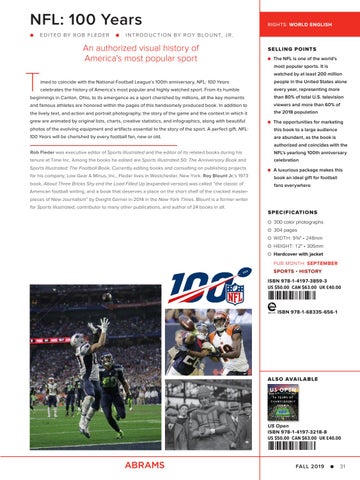 S PECIFICATIONS 300 color photographs 304 pages WIDTH: 9¾" • 248mm HEIGHT: 12" • 305mm Hardcover with jacket PUB MONTH: SEPTEMBER SPORTS • HISTORY ISBN ISBN: 978-1-4197-3859-3 978-1-4197-3859-3 US $50.00 CAN $63.00 UK 5 5£40.00 000 9 781419 738593