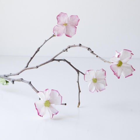 Everyone’s face brightens when the dogwood trees bloom in early spring. Create that happy springtime feeling in your home any time of year with these budding paper flowers. I chose coffee filters for these flowers because I knew their wonderful, crepe-like texture would give them a soft natural look. If you like, you can use a little watercolor paint to vary each one (see page 00).