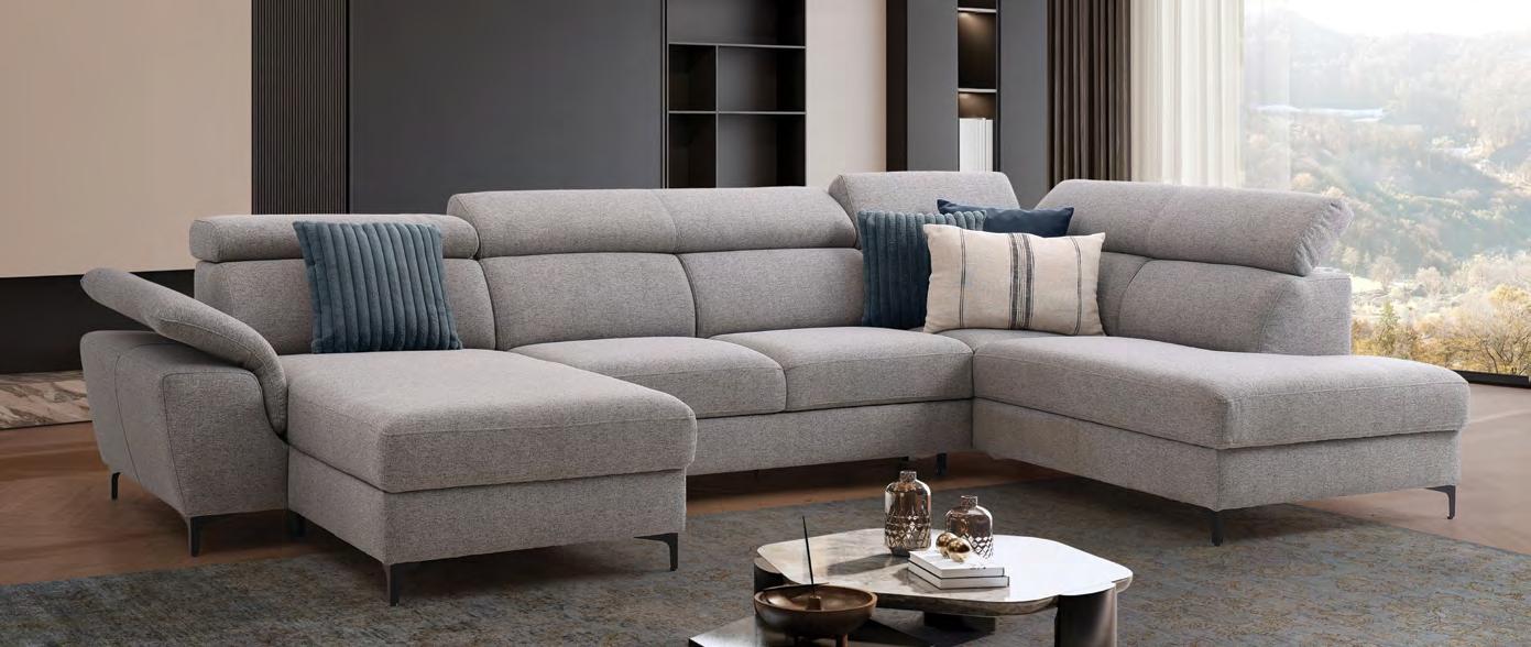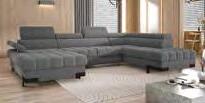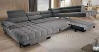 €4.895 Kotna sedežna garnitura SION XL, vzmeteno 223x339x173cm, leva ali desna postavitev, ležišče, predal, nastavljiv rokonaslon, 4x nastavljiv vzglavnik, material CROWN 18 temno siva ali 12 zelena