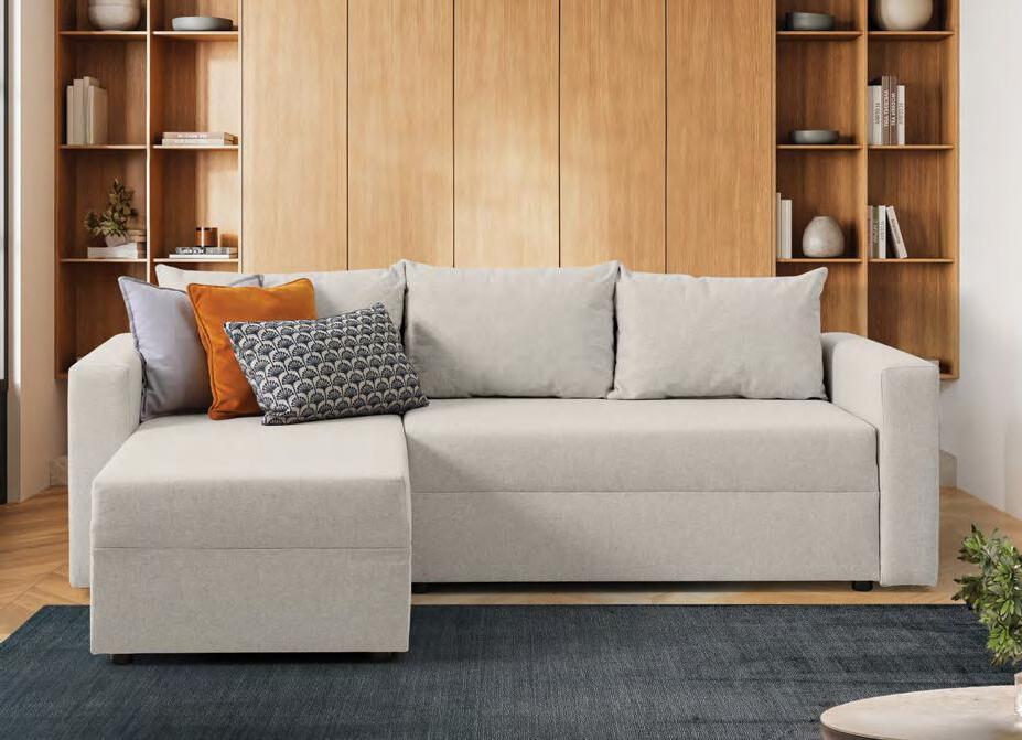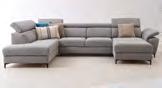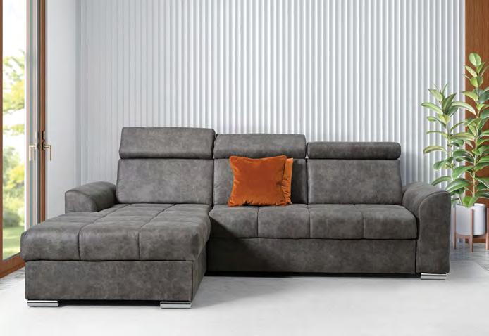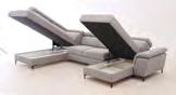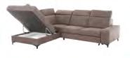 €2.505 Kotna sedežna garnitura LORIA, vzmeteno 271x228cm, leva ali desna postavitev, ležišče, predal, 5x nastavljiv vzglavnik, blago TIMOR NEW 105 taupe ali 108 siva €1.390