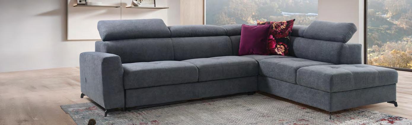 €3.585 Kotna sedežna GIANO S, vzmeteno, 273x175cm, leva ali desna postavitev, električno pomično sedišče, 3x nastavljiv vzglavnik, material AUSTIN 19 antracit ali 13 zelena