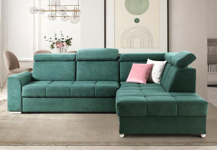 €2.505 Kotna sedežna CITY, vzmeteno, 282x218cm, leva ali desna postavitev, ležišče, predal, 3x nastavljiv vzglavnik, kovinske noge, material COSMIC NEW 121 antracit ali 134 zelena