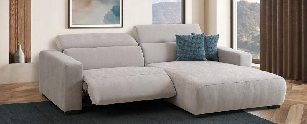 Kotna sedežna RENO, vzmeteno 248x184cm, leva ali desna postavitev, širok električni počivalnik, 2x nastavljiv vzglavnik, material WIND 84 svetlo siva ali 56 opečnata