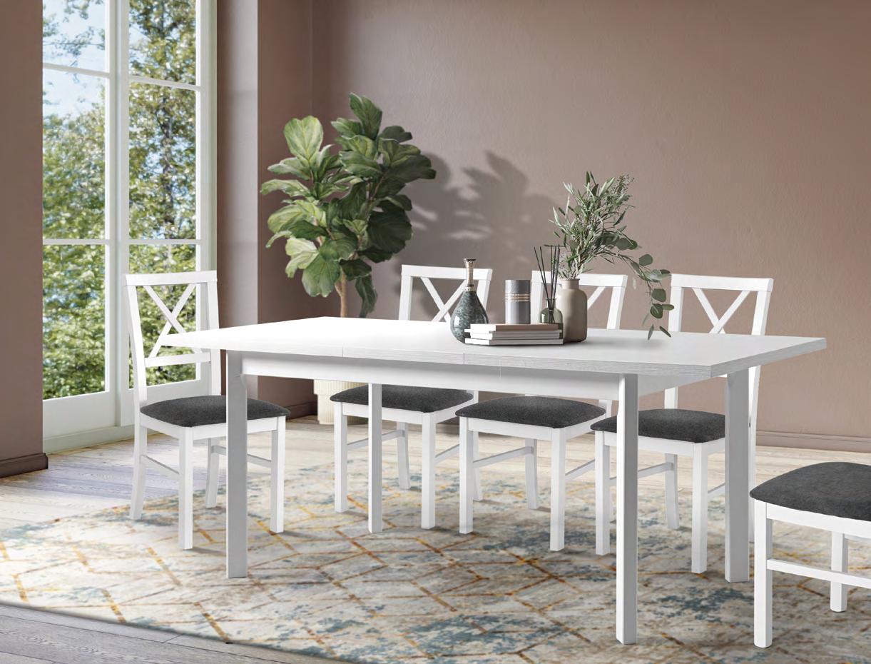 miza MODENA, 80x140/180cm, bela/bela in 4x stol MILANO 4, bela/blago siva