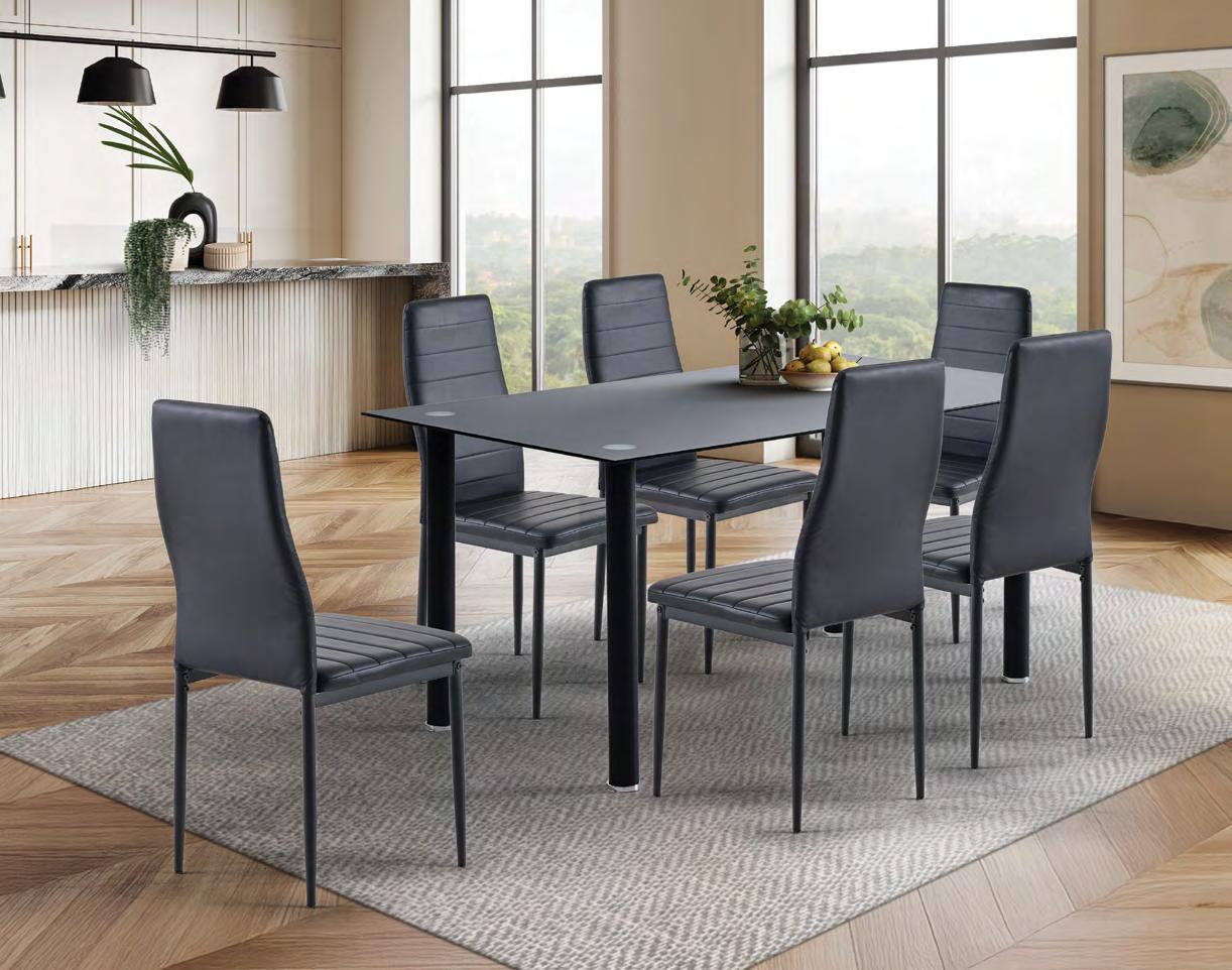 €605 Set FANTASY, 5 kosov raztegljiva miza FANTASY 90x90/180cm, kovina/steklo in 4x nakladljiv stol JOY kovina/tekstilen, antracit
