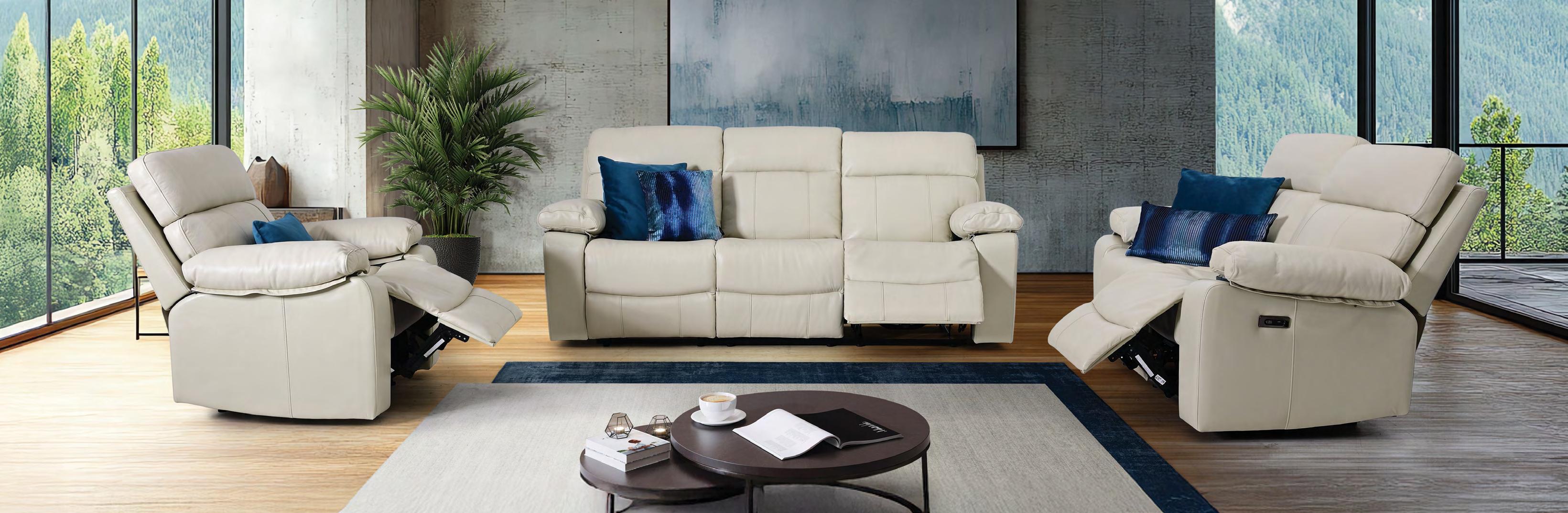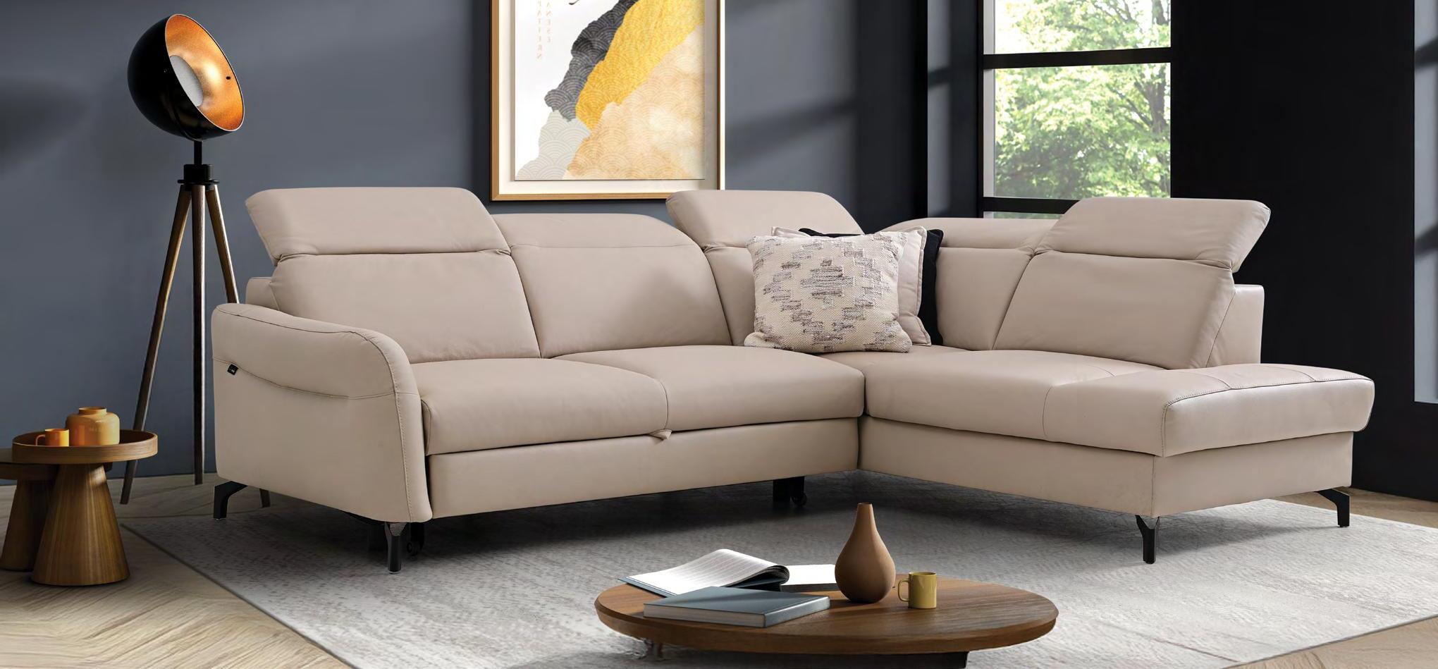 €2.409 Usnjen 3-sed KELLY 220x76cm, 2x počivalnik, žepkasto vzmetenje, usnje/um.usnje COMO Z02 bež