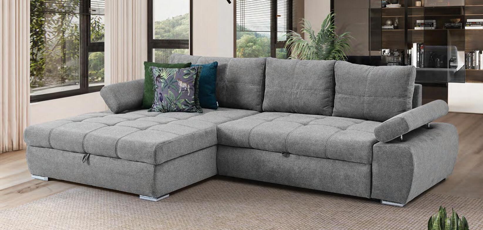 €3.722 Kotna sedežna CADIZ, 233x250cm, boxspring vzmetenje, leva ali desna postavitev, pomično hrbtišče, mat.kat. 3 AMIRA različne barve. Ostali materiali in kategorije materialov, nastavljivi vzglavniki, ledvene blazine ter ostale funkcije za doplačilo.
