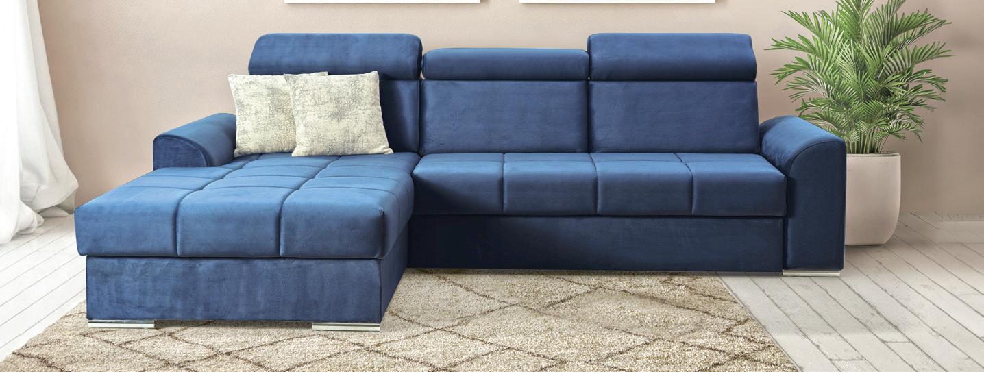 €990 Kotna sedežna garnitura CUBINO S, 190x270cm, leva ali desna postavitev, ležišče, predal, 3x nastavljiv vzglavnik, blago COSMIC različne barve iz zaloge