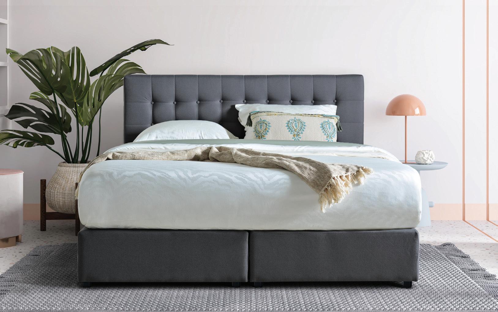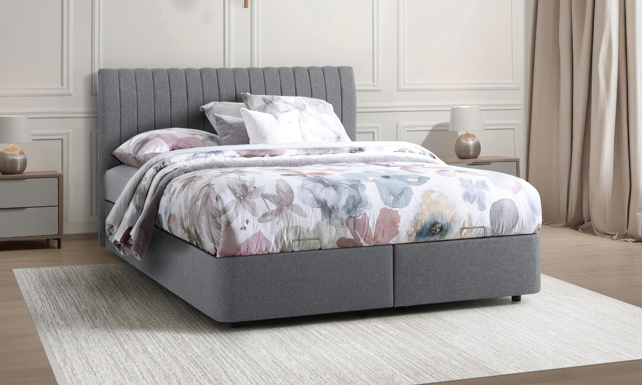 €1.768 Set AMSTERDAM / SILVER DREAM, 160x200cm postelja AMSTERDAM, dvižno letveno dno, predal, blago siva, vzmetnica SILVER DREAM,