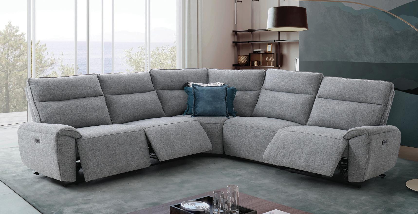 €4.395 Usnjena kotna sedežna garnitura LIAM, 297x247cm, leva ali desna postavitev, 1x električni počivalnik, 5x nastavljiv vzglavnik, usnje/um. usnje svetlo siva €2.490