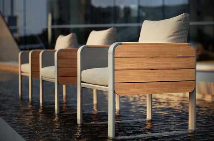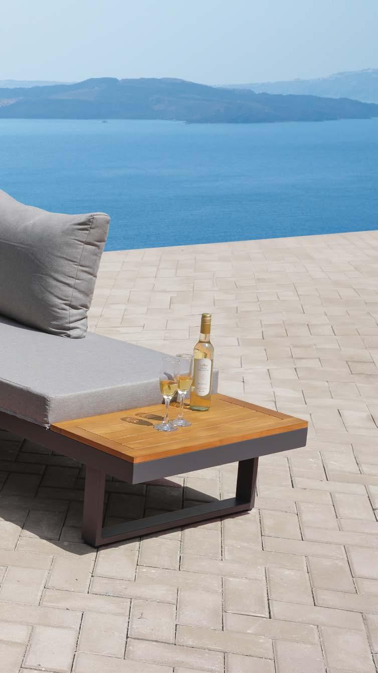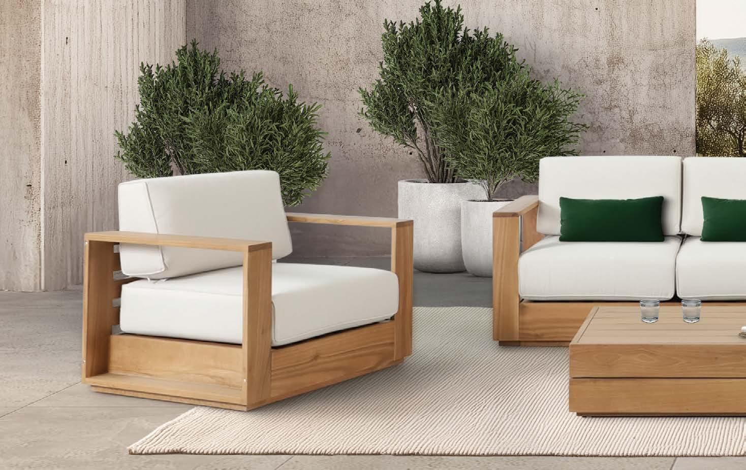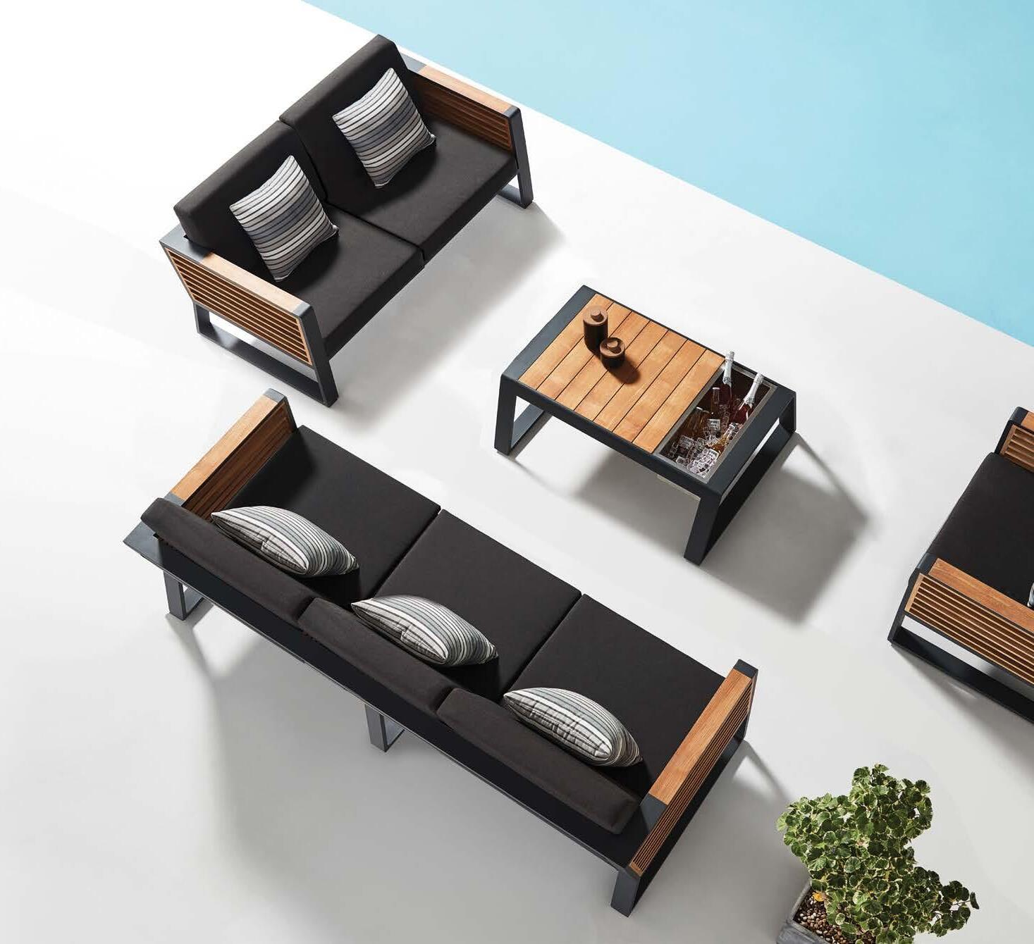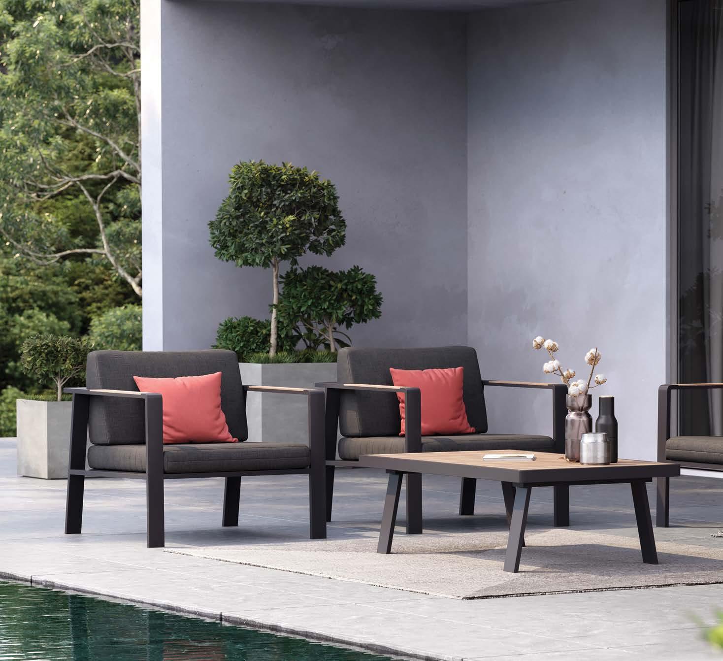 Fotelj WING, z blazinami 89x86cm, aluminij/tik 3-sed WING, z blazinami 204x86cm, aluminij/tik Mizica WING, 80x120cm, aluminij/tik
