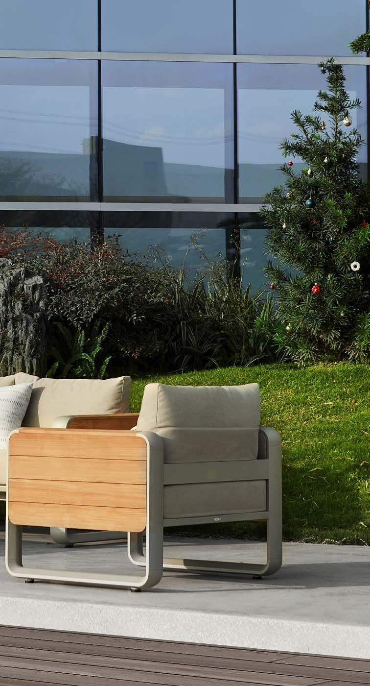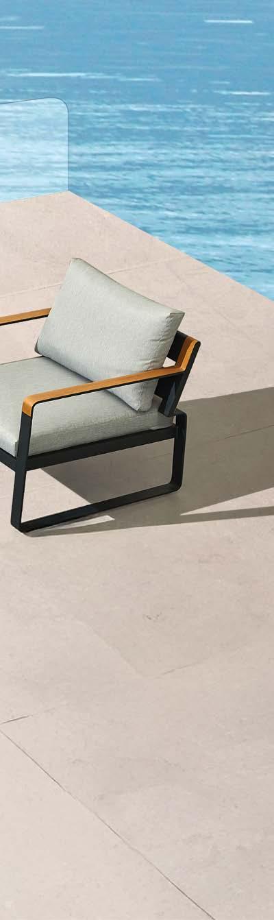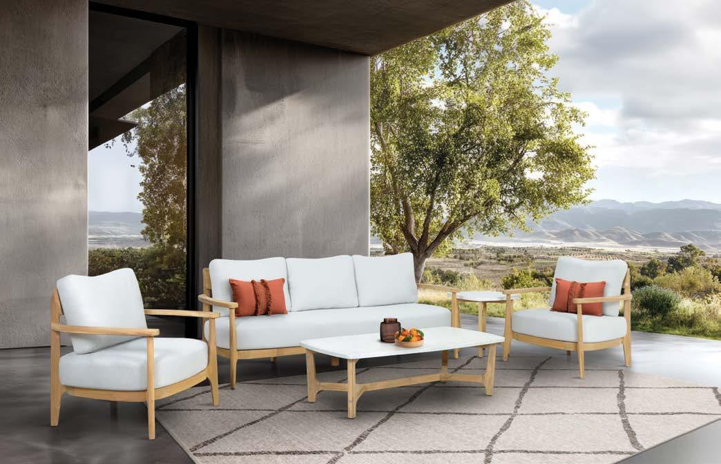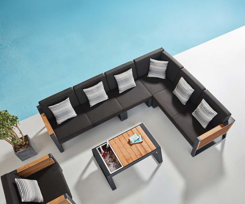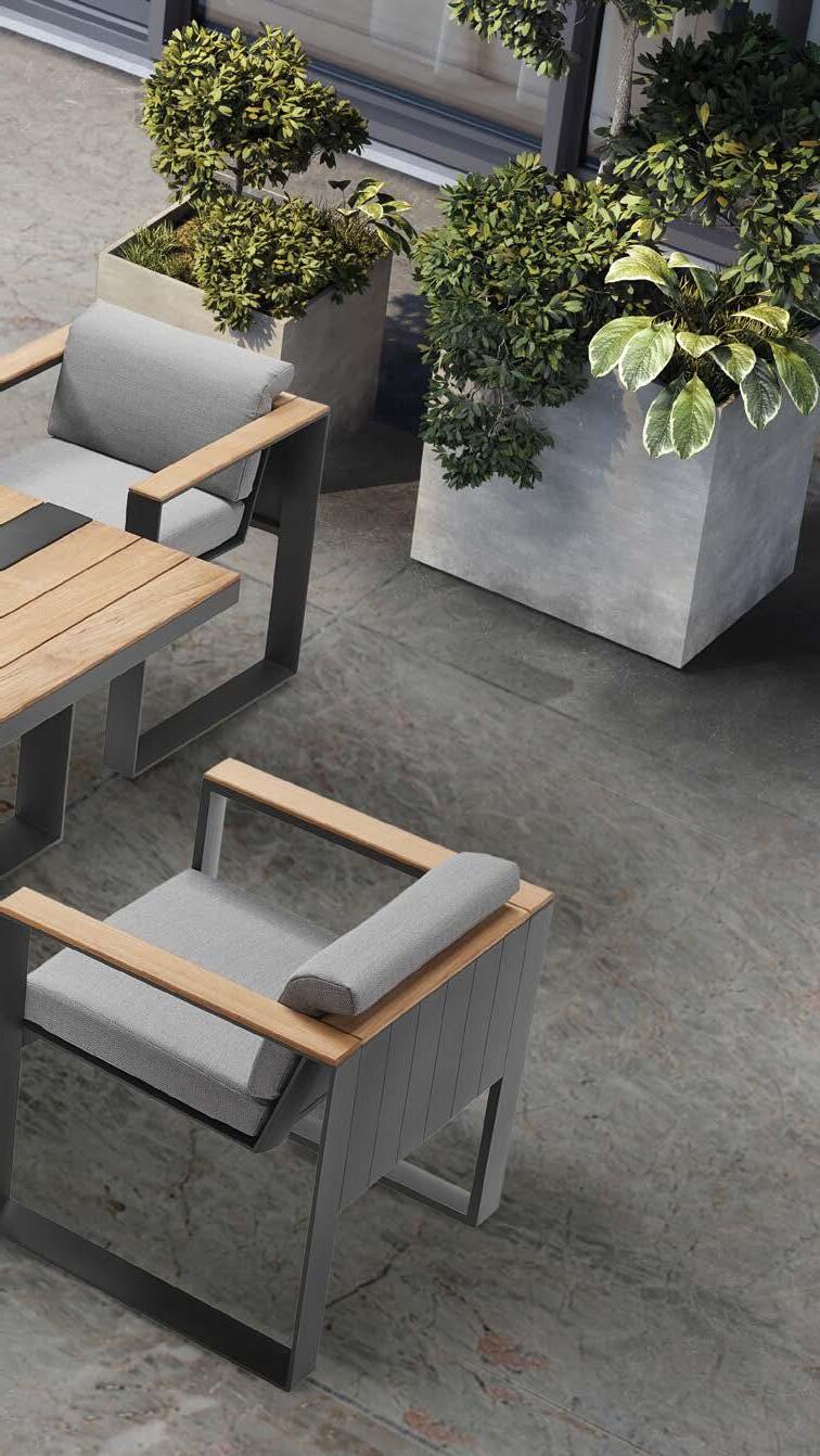 Fotelj WING, z blazinami 89x86cm, aluminij/tik 3-sed WING, z blazinami 204x86cm, aluminij/tik Mizica WING, 80x120cm, aluminij/tik