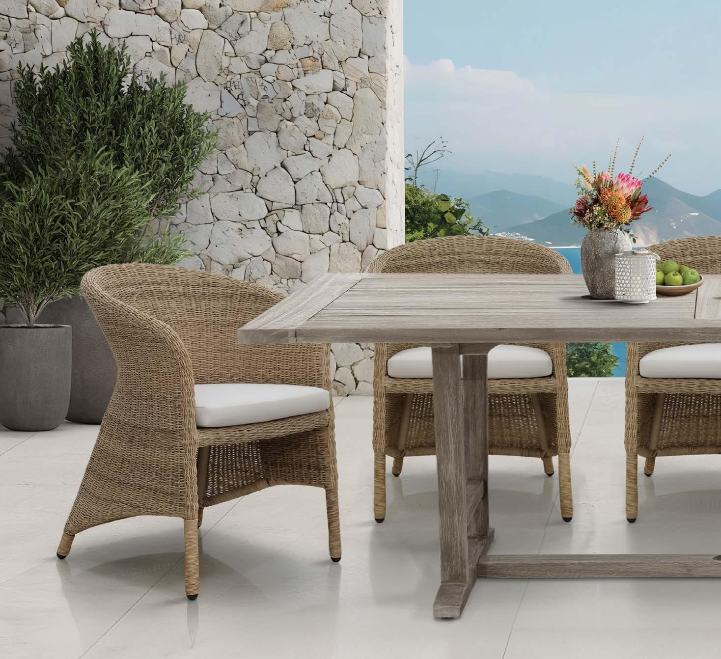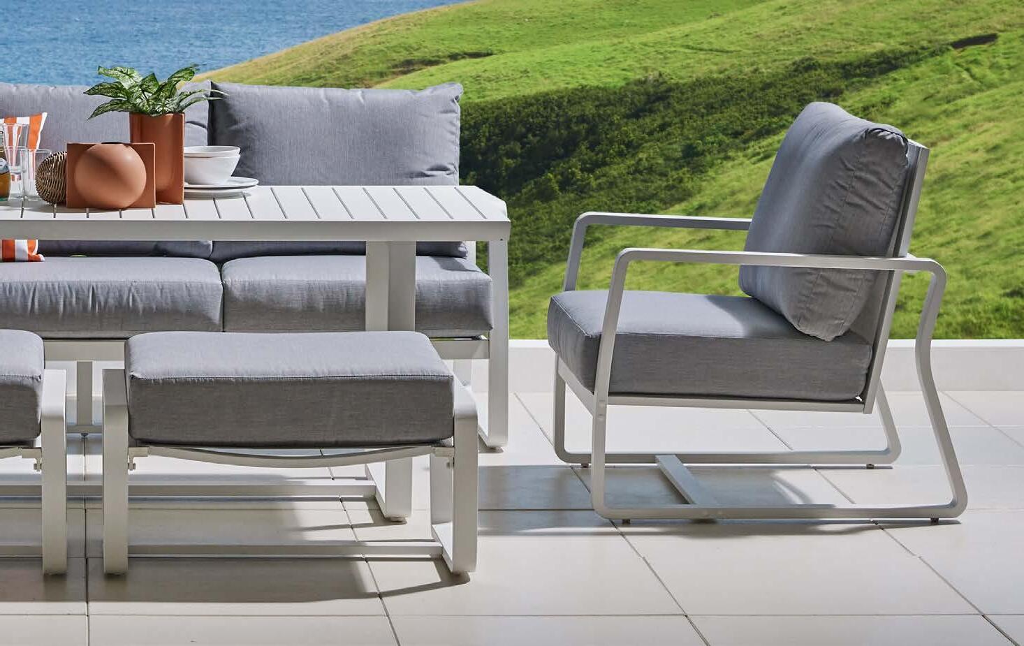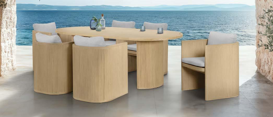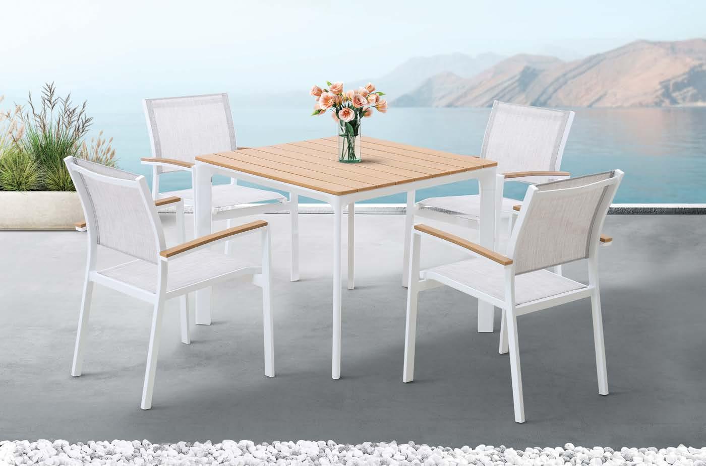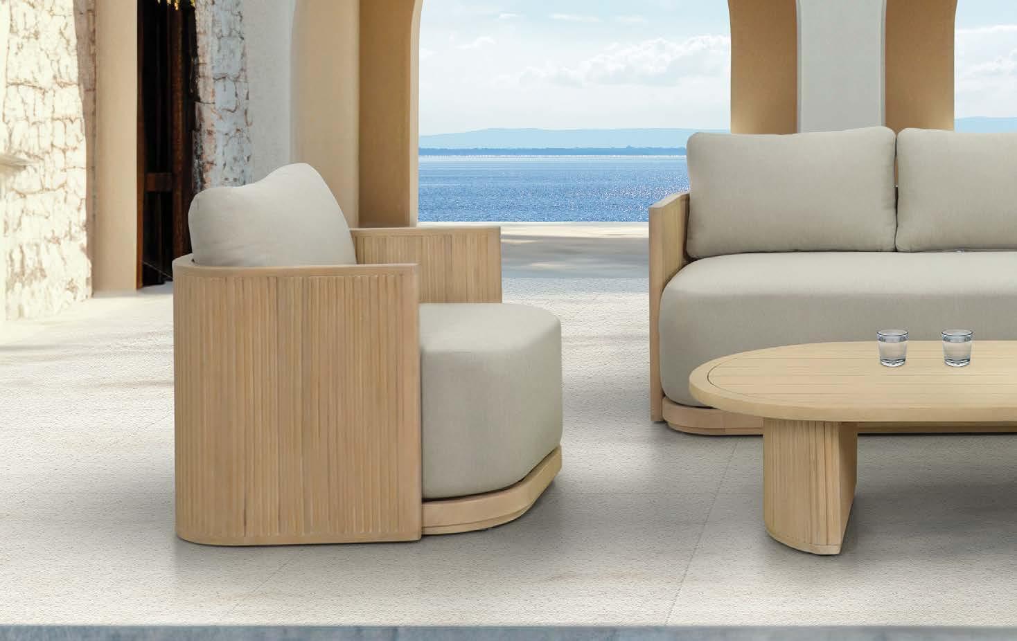 Fotelj WING, z blazinami 89x86cm, aluminij/tik 3-sed WING, z blazinami 204x86cm, aluminij/tik Mizica WING, 80x120cm, aluminij/tik