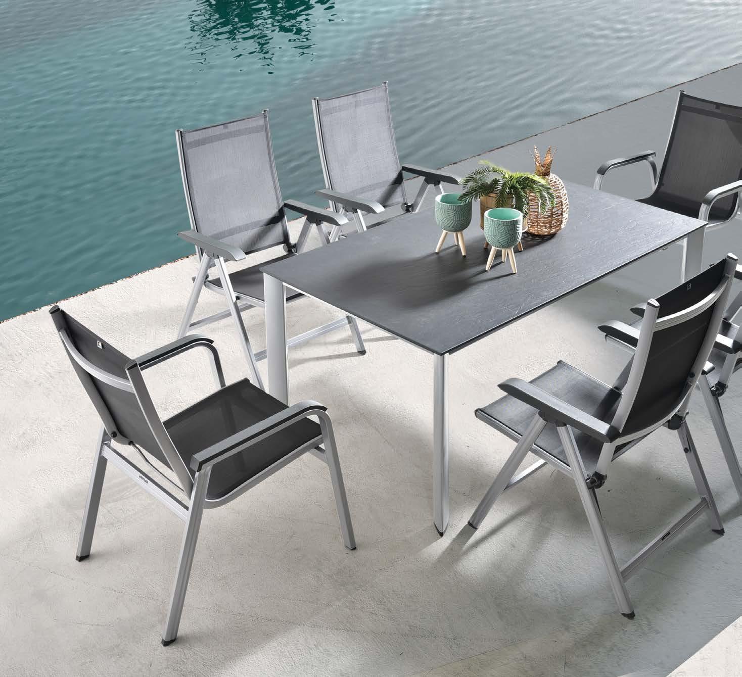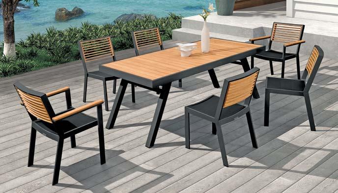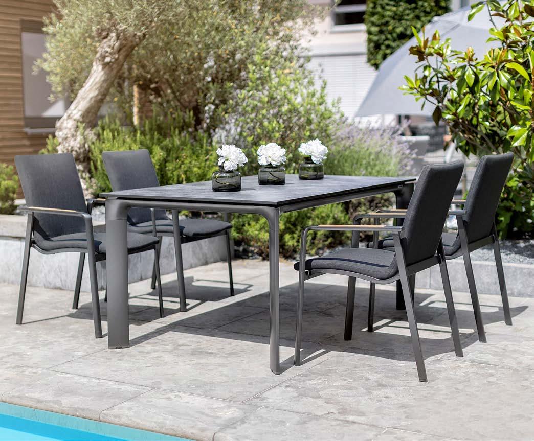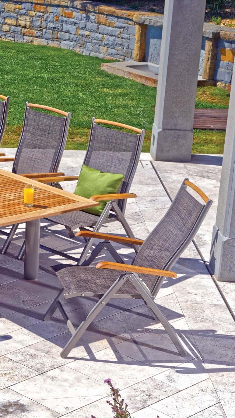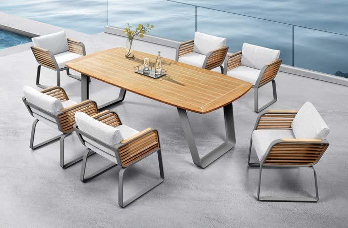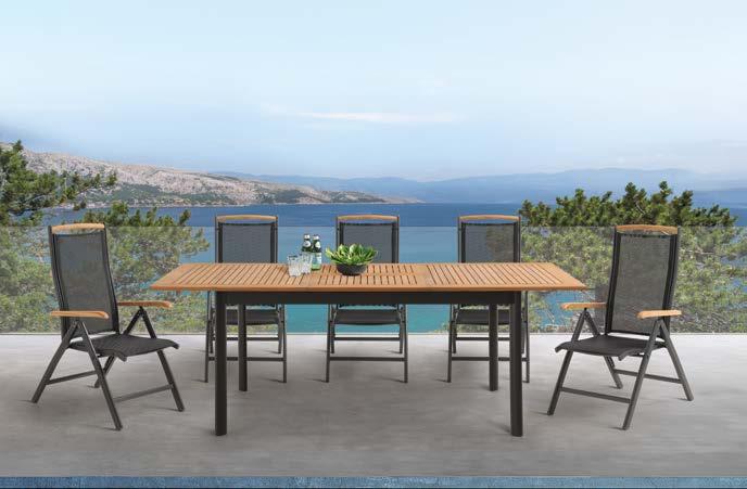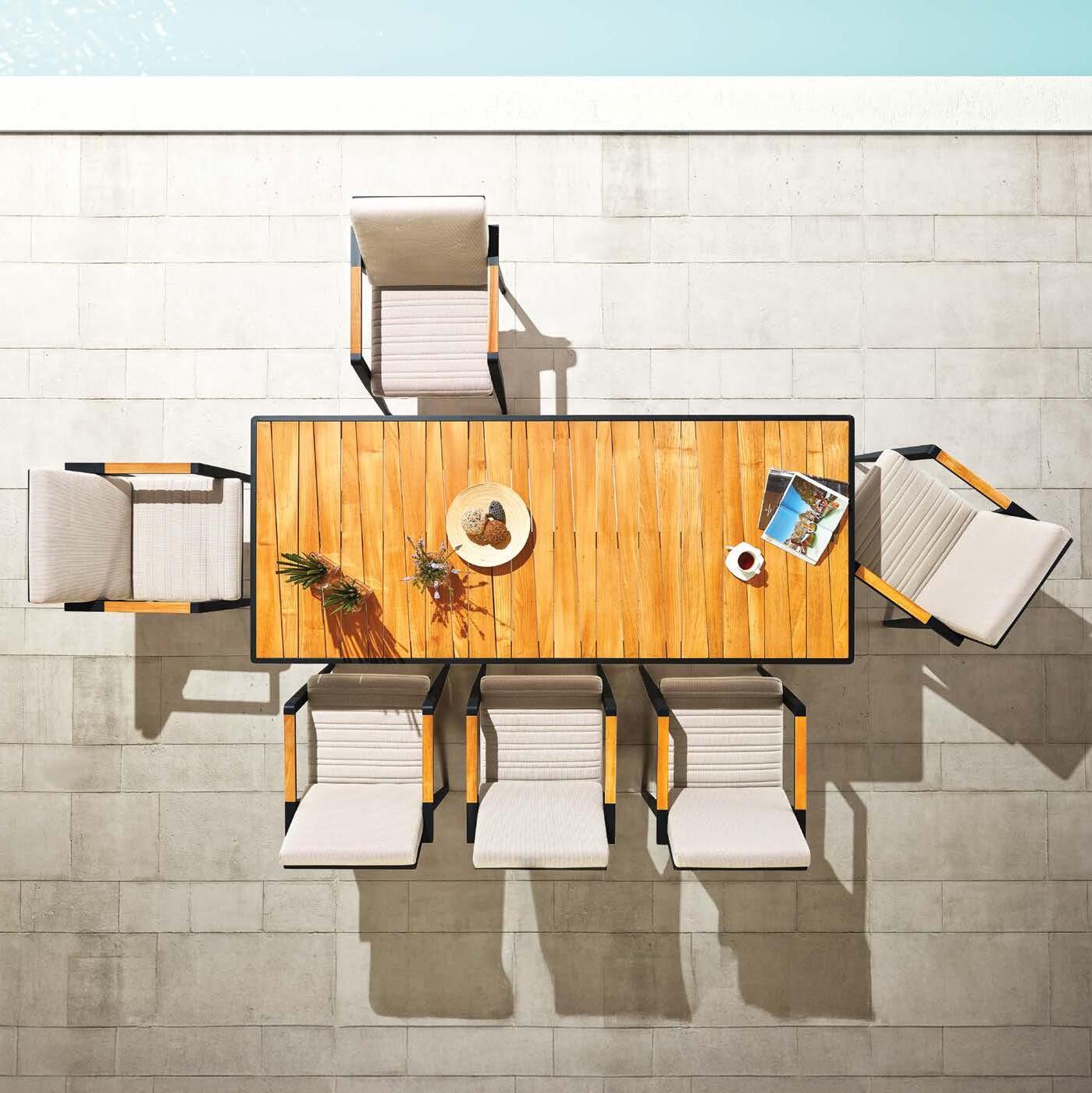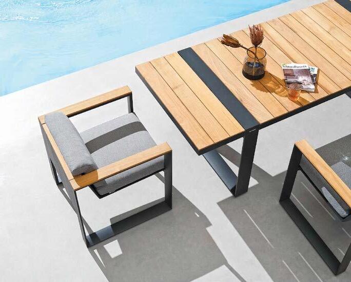 Miza EMOTI, 90x160cm, aluminij/tik Stol EMOTI, z rokonaslonom in blazino, aluminij/tik