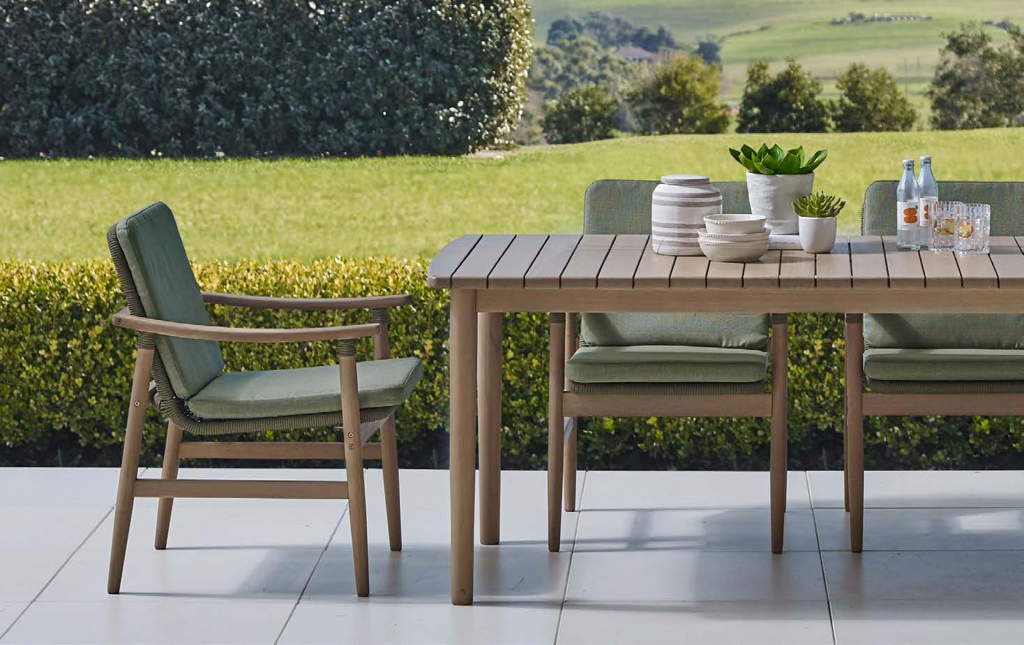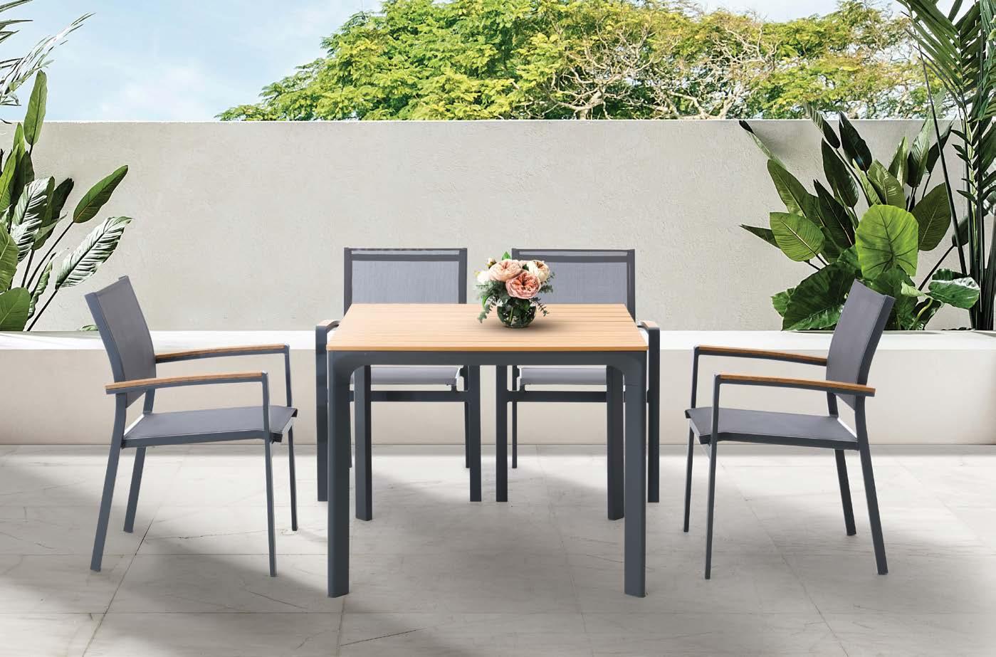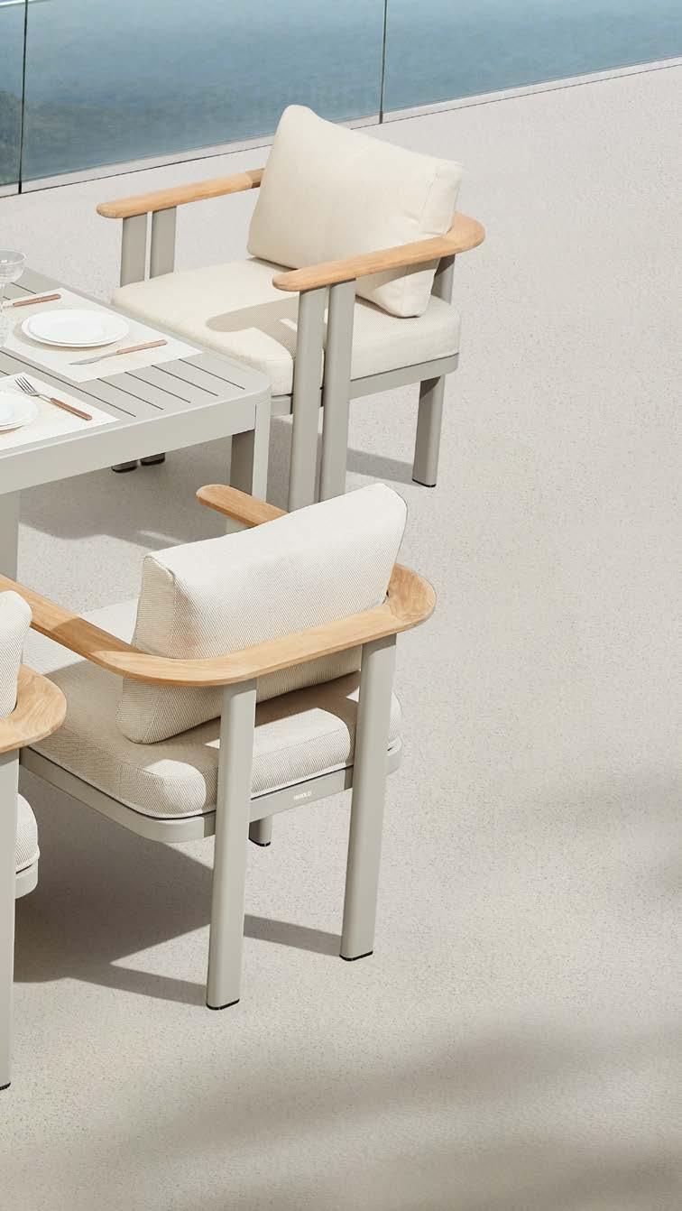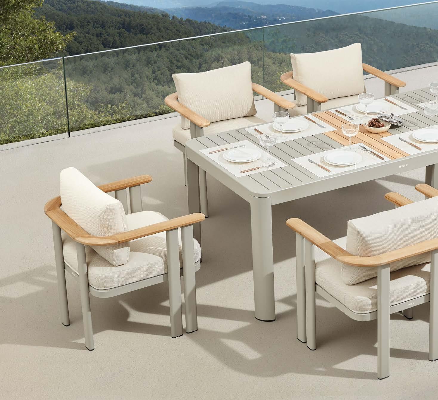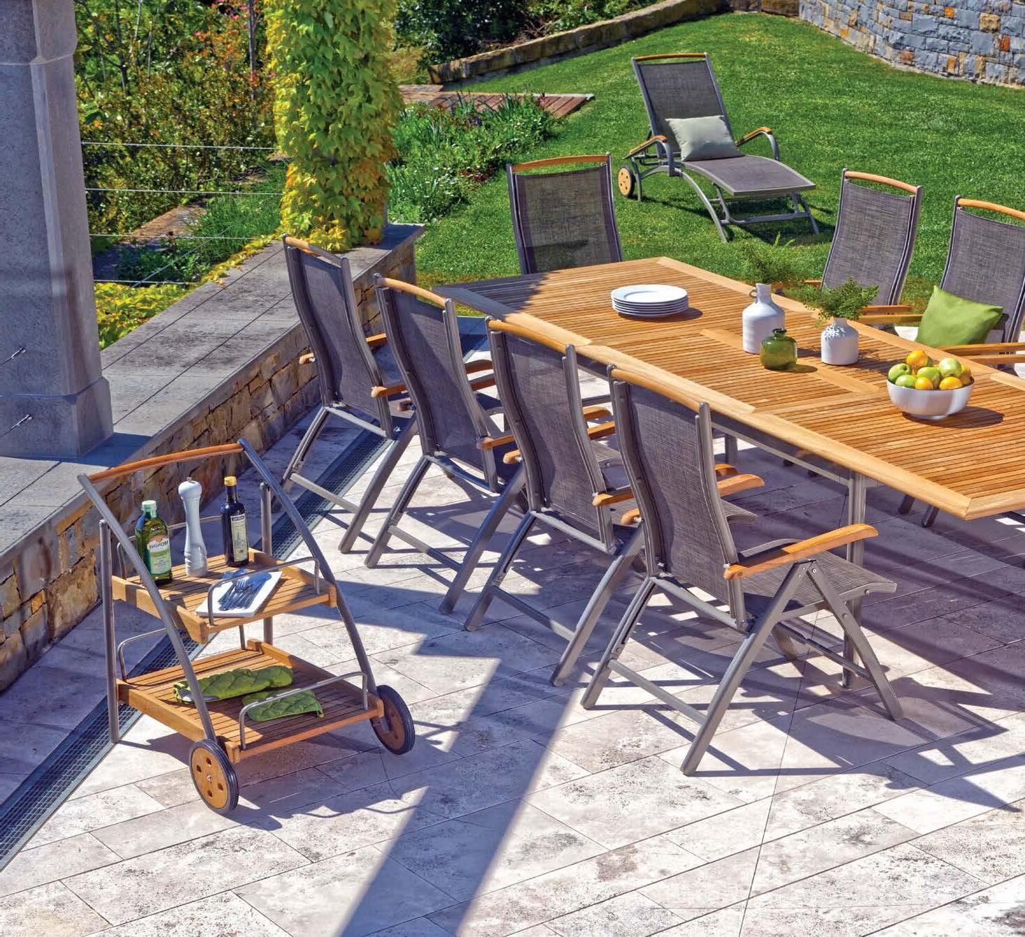 Miza EMOTI, 90x160cm, aluminij/tik Stol EMOTI, z rokonaslonom in blazino, aluminij/tik