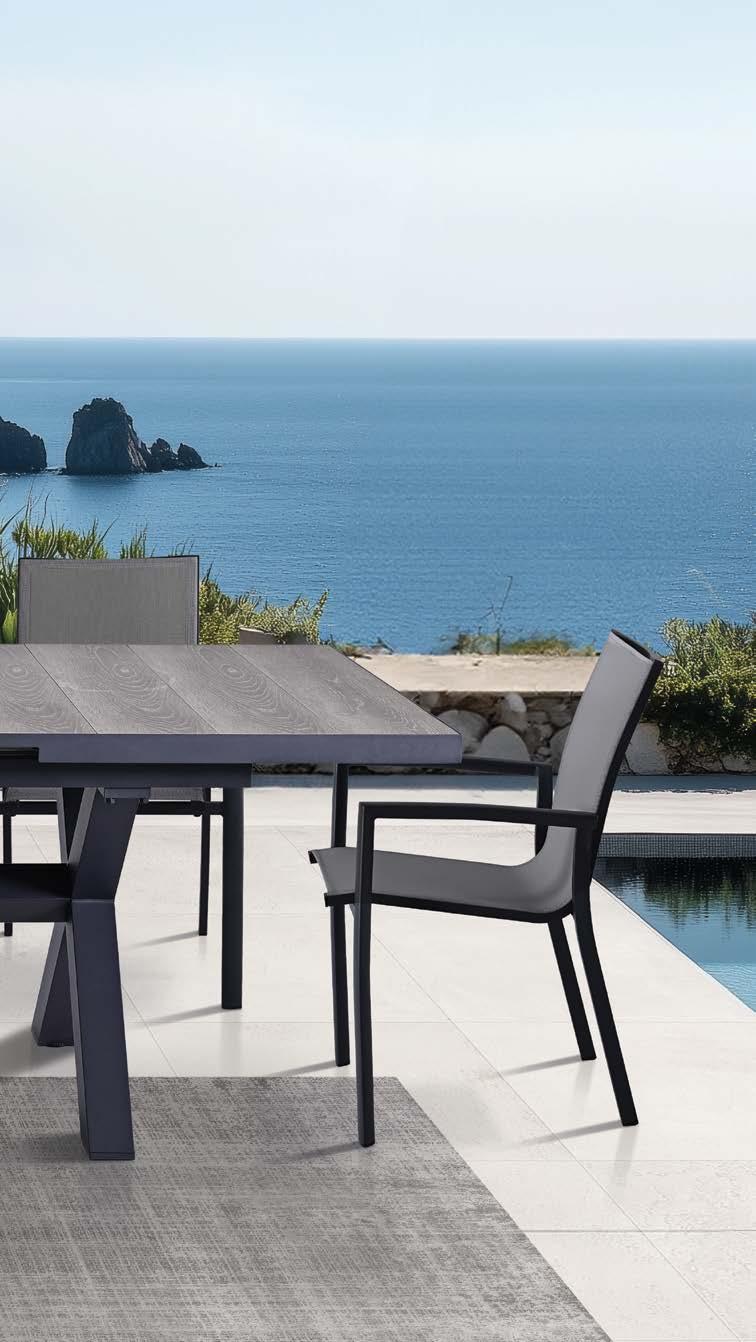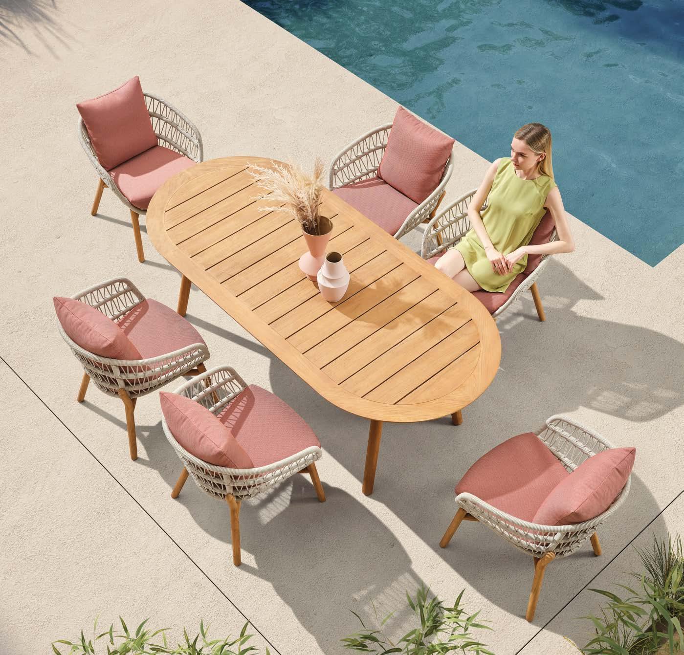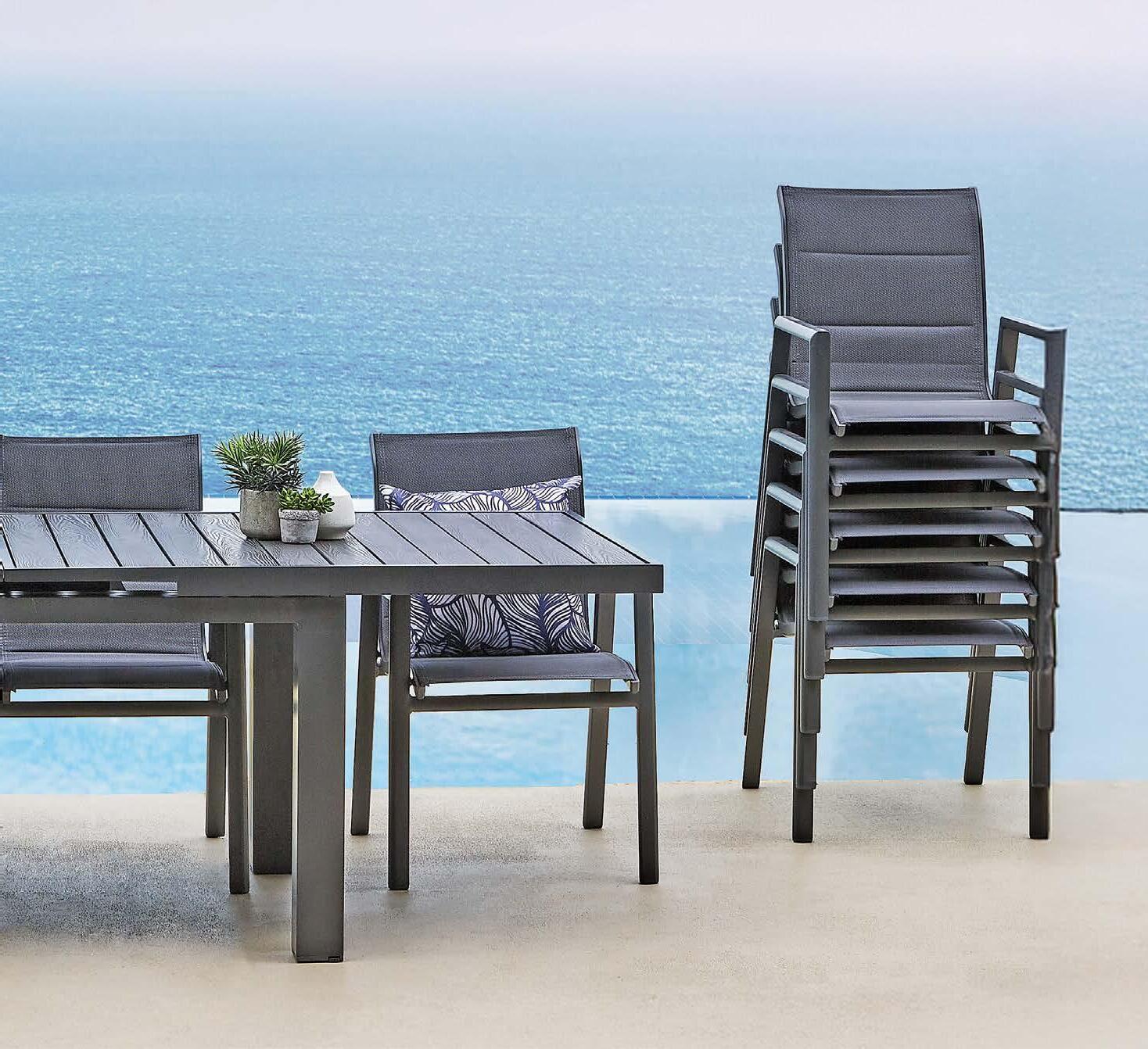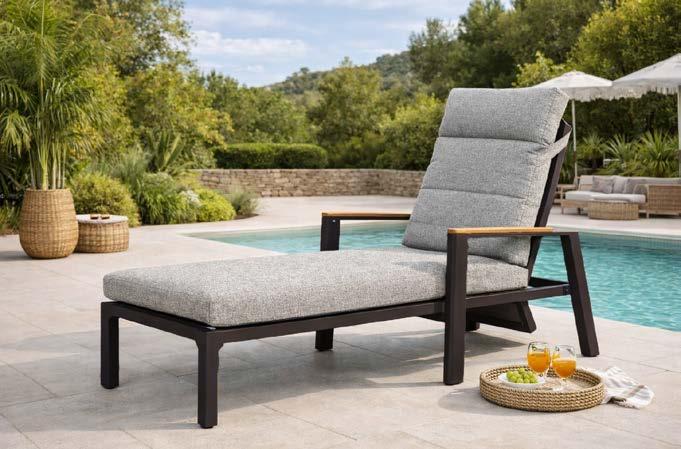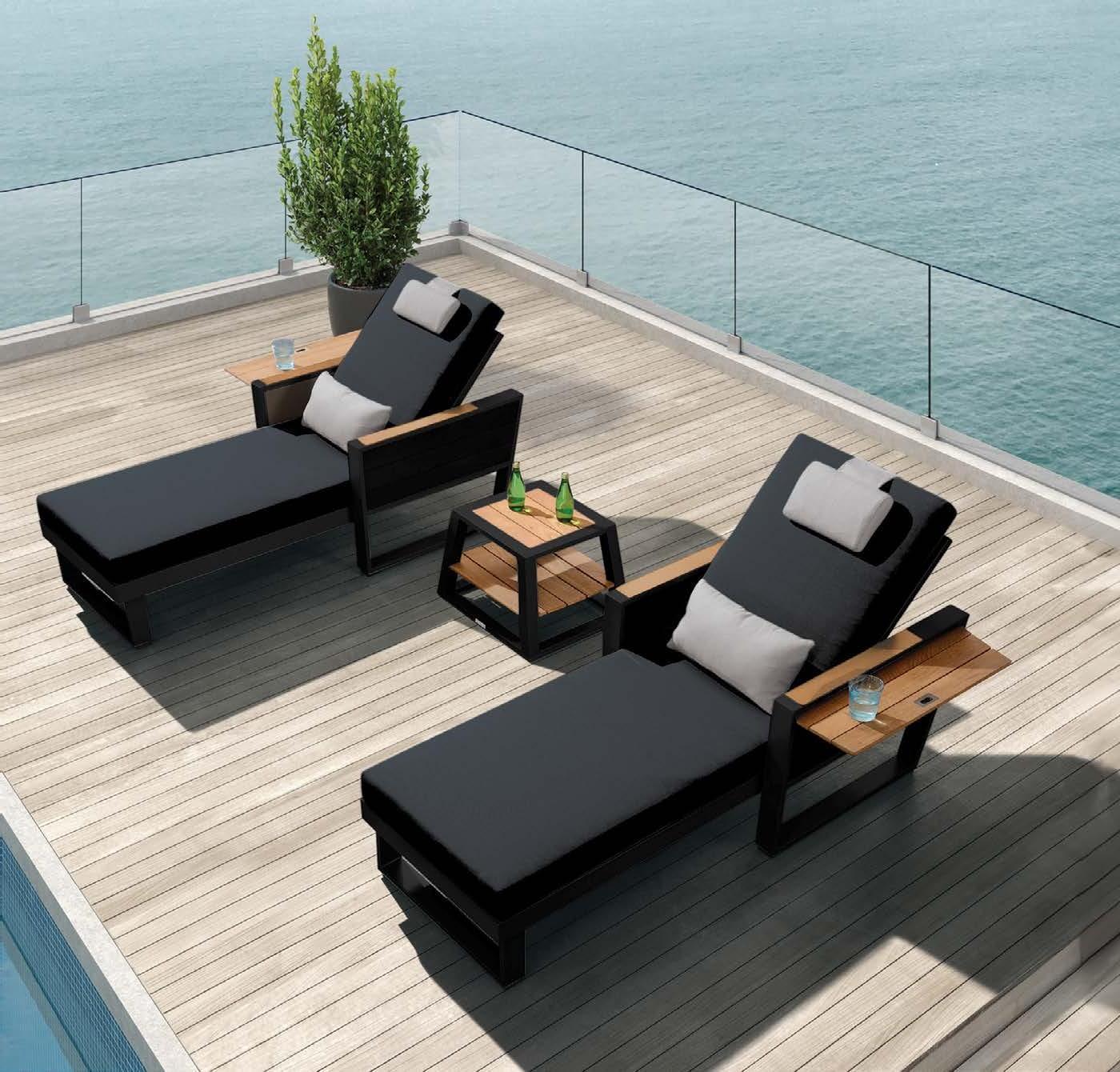 Miza EMOTI, 90x160cm, aluminij/tik Stol EMOTI, z rokonaslonom in blazino, aluminij/tik