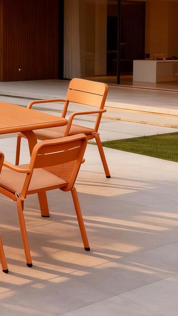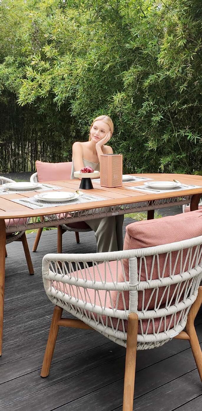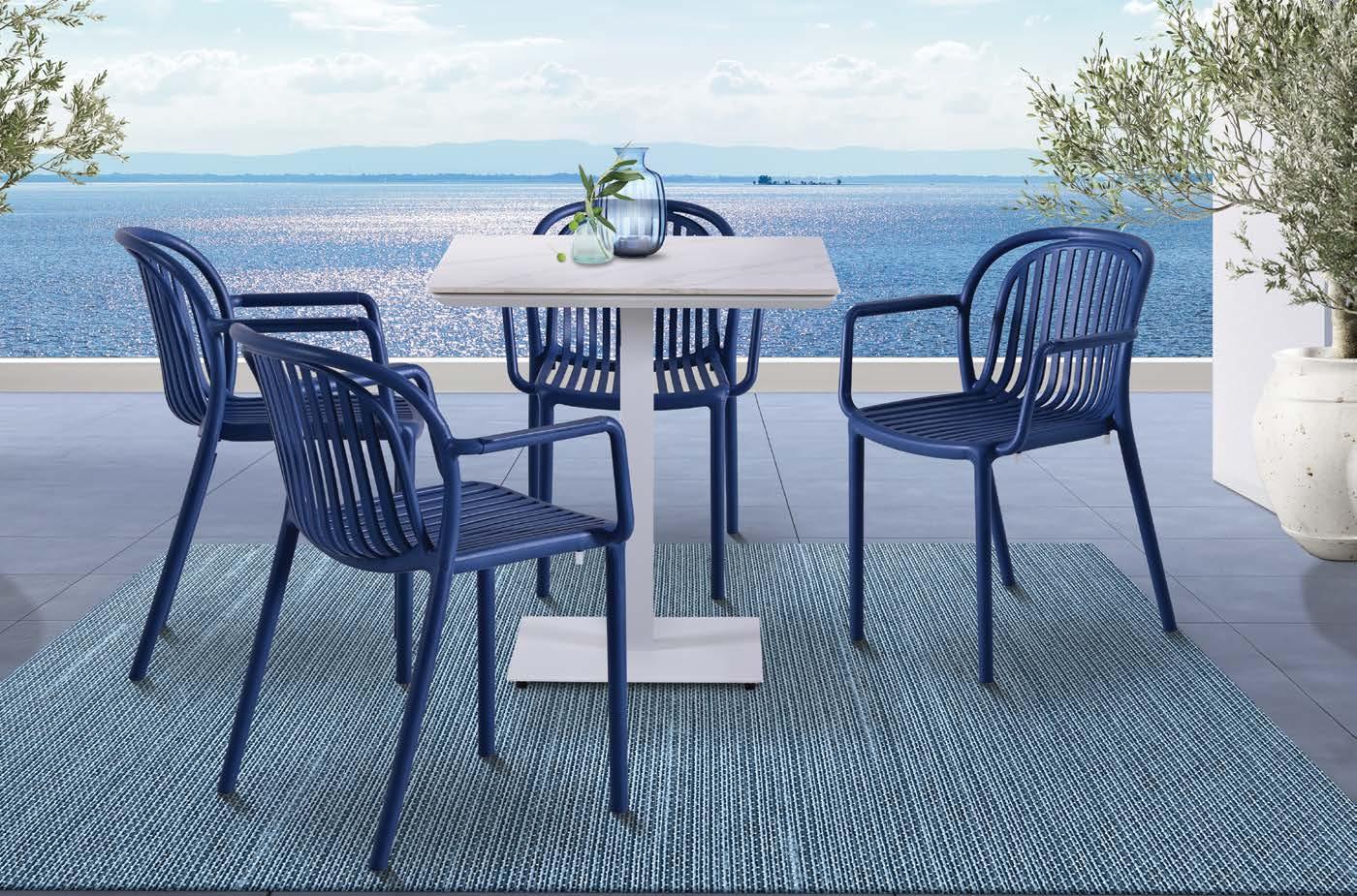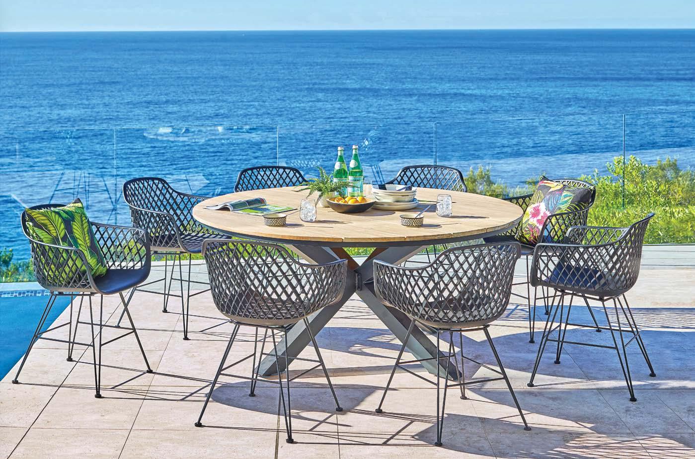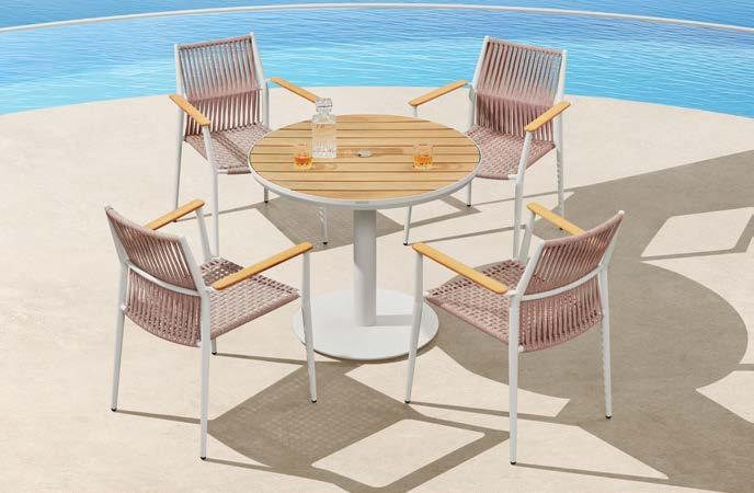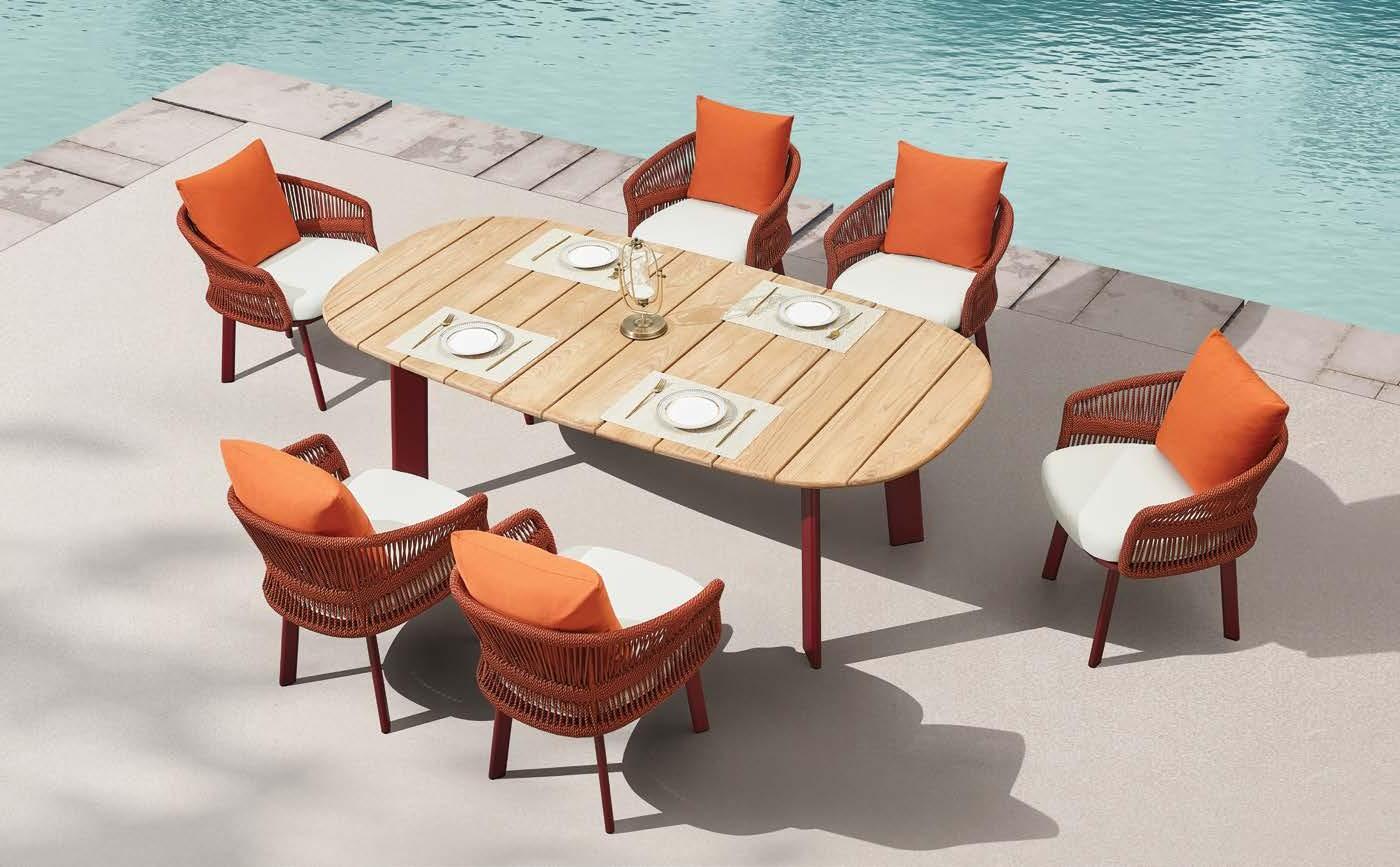 Miza EMOTI, 90x160cm, aluminij/tik Stol EMOTI, z rokonaslonom in blazino, aluminij/tik
